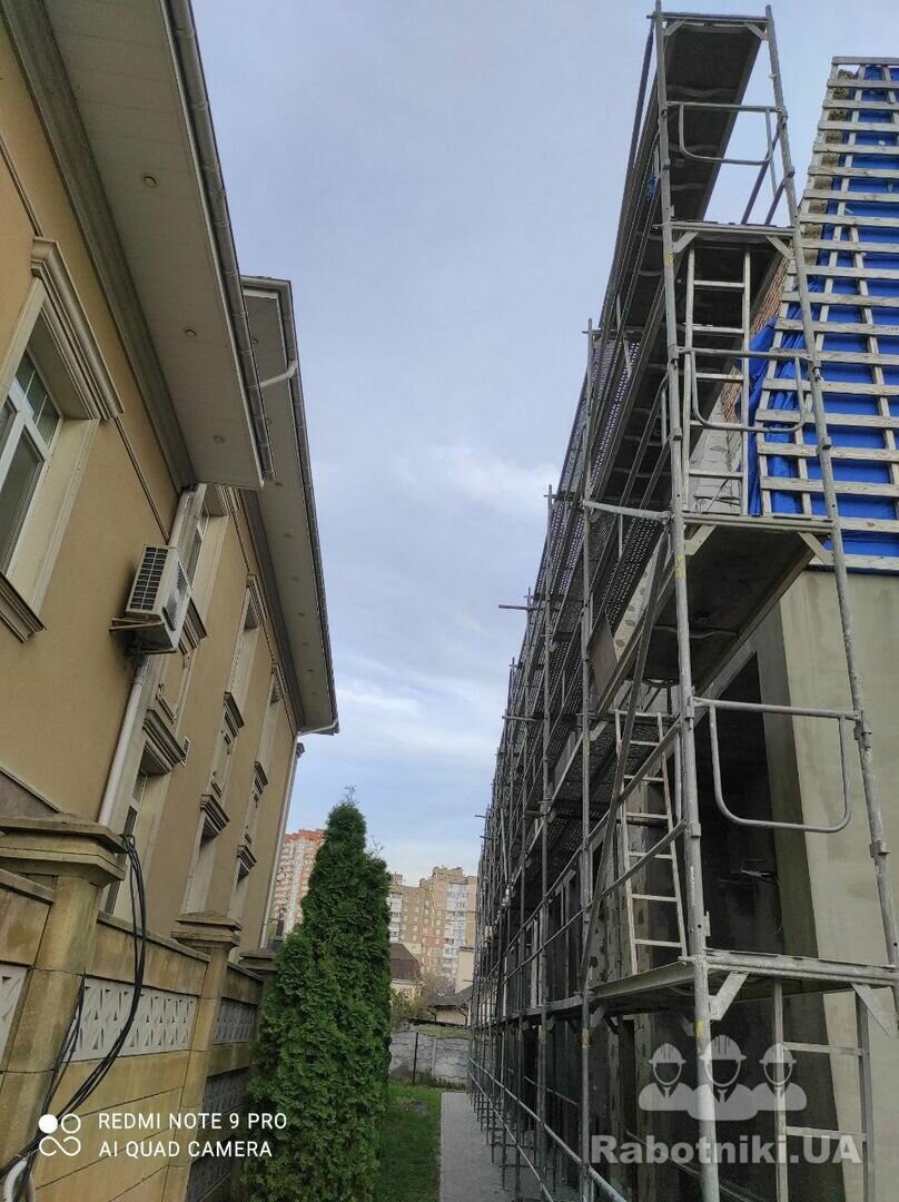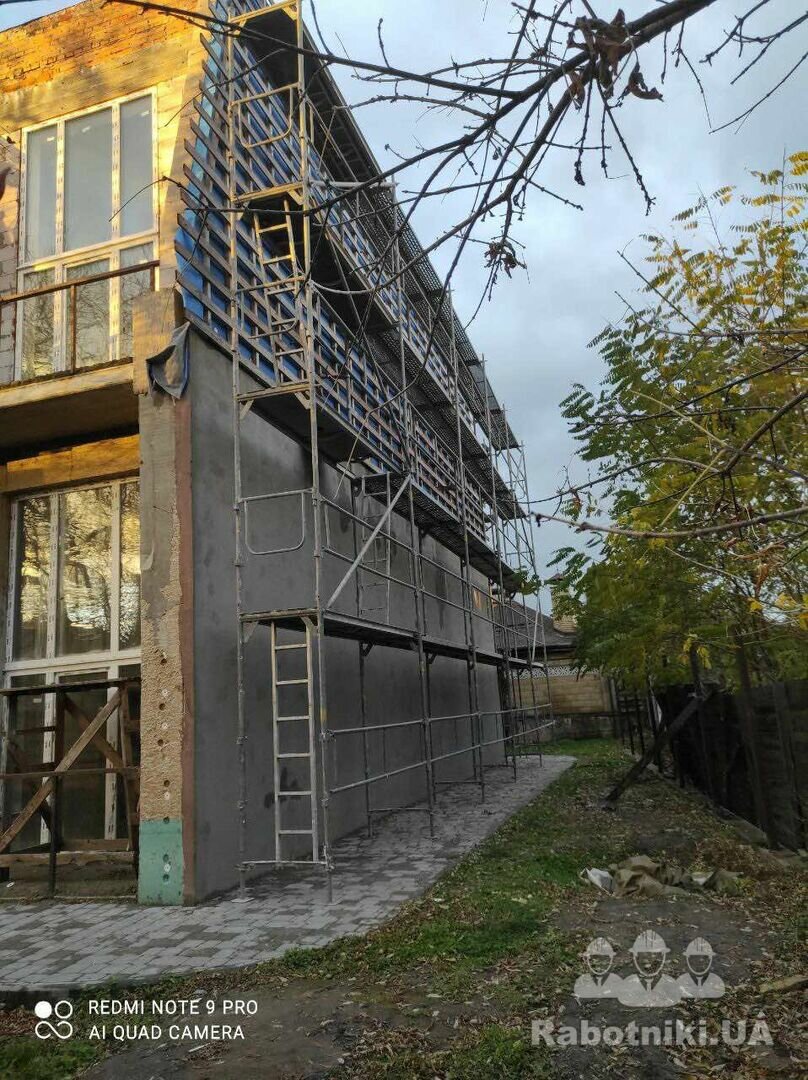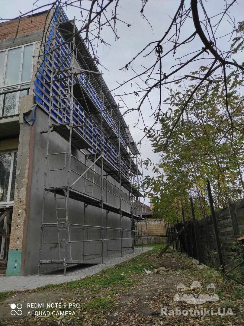 Леса стоят на 250м2.вата поклеена(ещё весной) нужно сделать перетяжку с сеткой, и нанести фактуру. Цена 400гр/м2.откосы 170м/п-цена 200гр./м:п.можно жить на объекте.