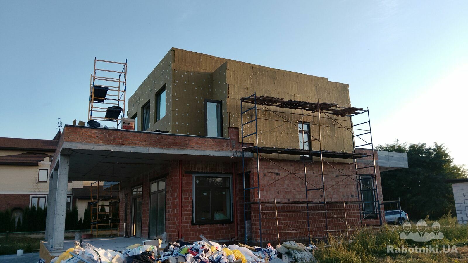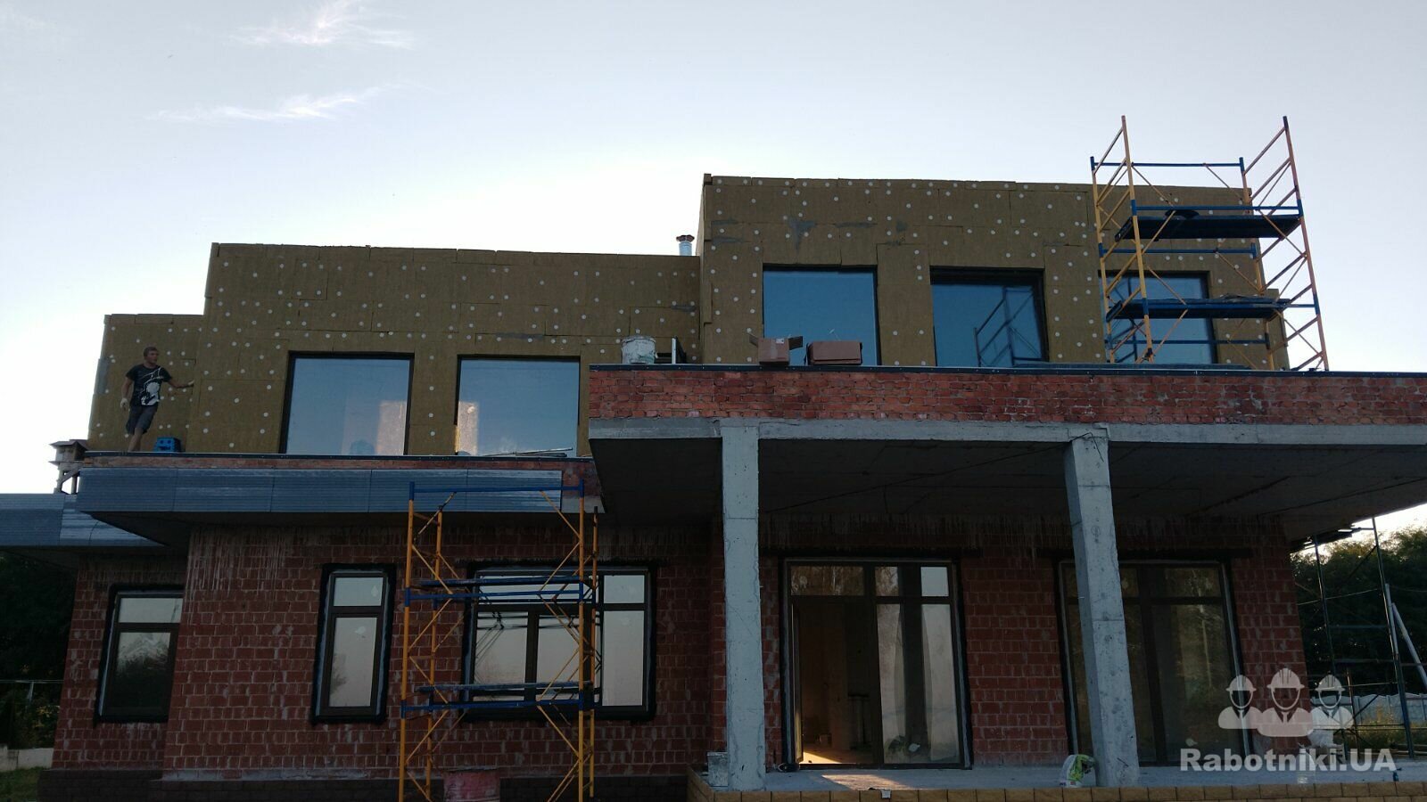 Сделать фасад. Минвата готова. Затянуть сеткой. Перетянуть барашком(он отколерованный). Общая площадь 257м.кв. Жилье на месте. 2 этаж. Оплата поэтапная.