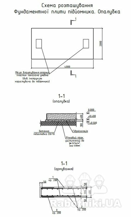Необхідно виконати будівельні роботи згідно з наданим кошторисом на об єкті, розташованому в с. Софіївська Борщагівка, Київська область: - улаштування фундаменту під підйомник СТО;