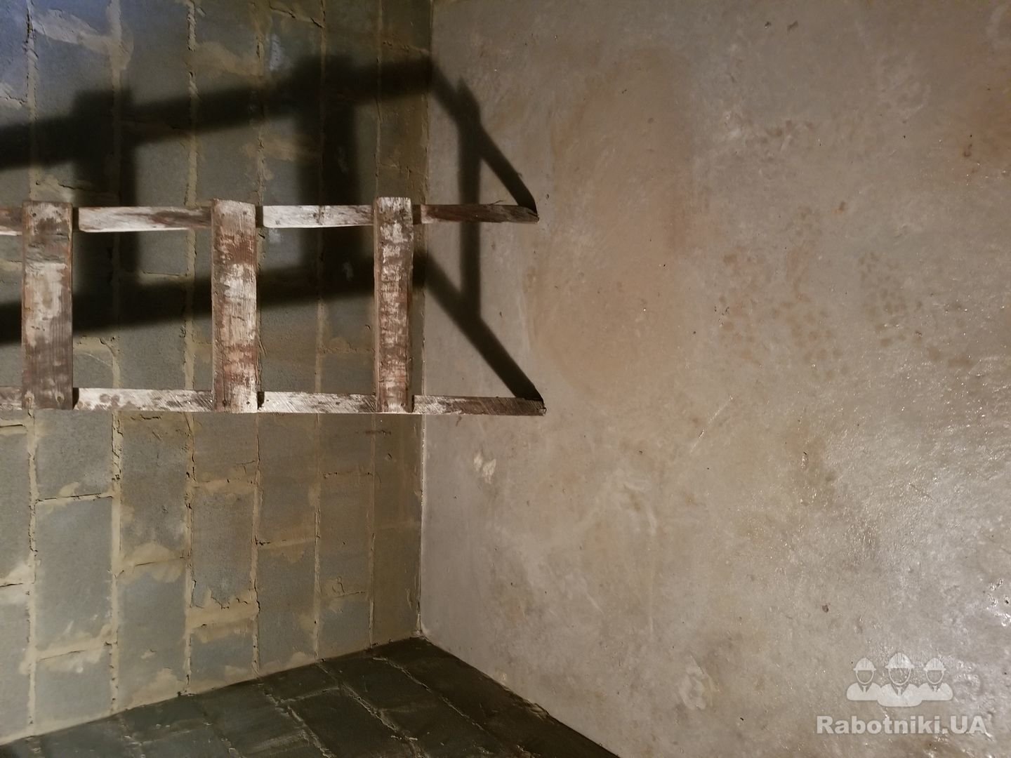 Подвал из шлакоблока размером 2.86 х 1.84 х1.96 на бетонной плите течет в местах примыкания стена-пол. Надо загидроизолировать стены, места примыкания стена -пол, стена-стена, стена -потолок. Сейчас а подвале после осушения за сутки вода поднялась на 15 мм. Мксимальный уровень воды был 20 см.