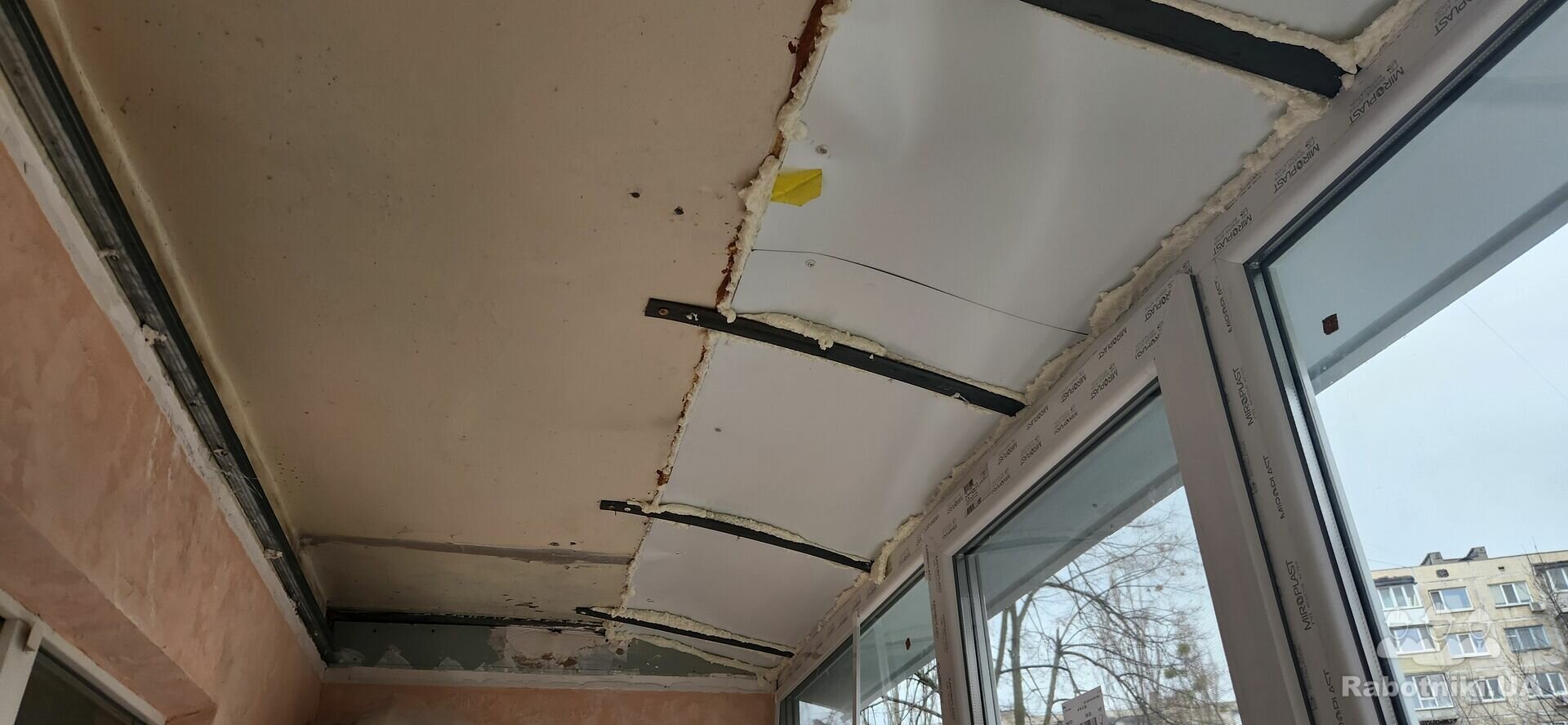 Потрібно встановити гіпсокартон на стелі, на балконі та лоджії, а також бокові укоси. Або якась альтернатива, вагонка, натяжна стеля, тощо.