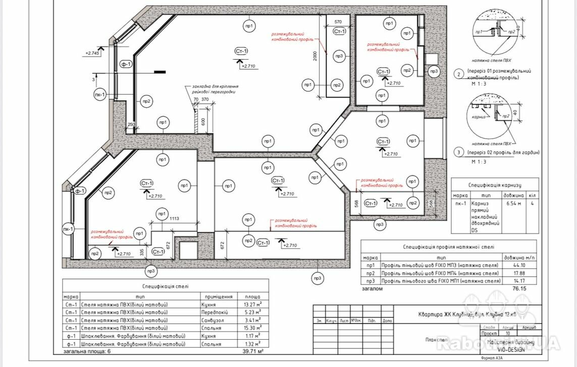 виготовлення стелі (кухня та кімната ) під покраску для подальшого стикування з натяжним потолком (креслення надано);