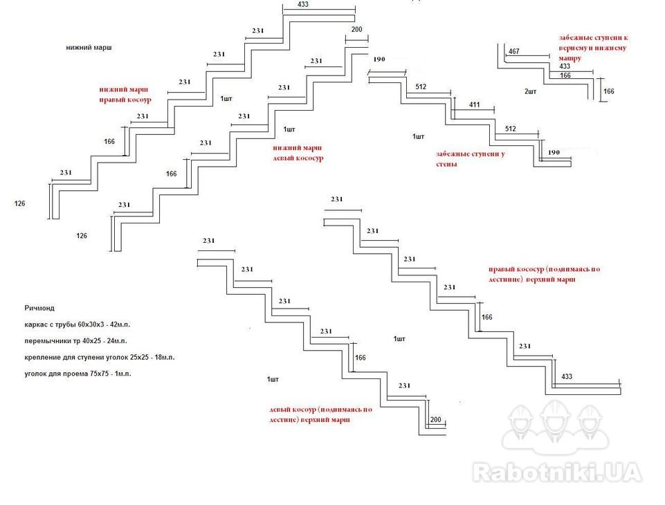 Есть сваренный каркас лестницы, состоит из 5 косоуров. Нужно его собрать методом сварки. Заполировать покрасить и установить. Расходники ваши.