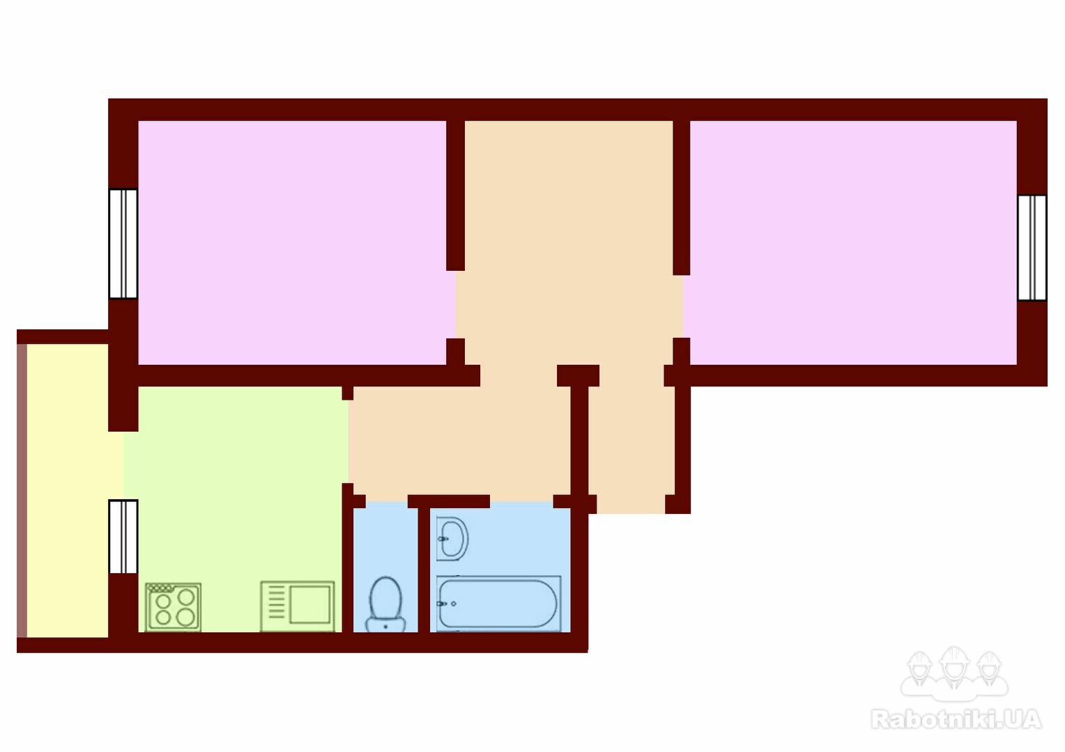 Загальна площа по підлозі: (ванна 2,6 3,7, туалет 1,0 1,3 м2, висота стель 2,65 м)