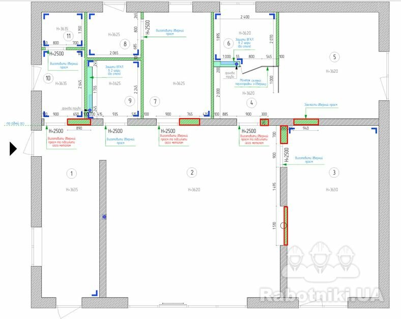 Потрібно виконати кладку стін: - з газоблоку орієнтир +/-60м2, - з цегли оріієнтир +/-20м2 (на фото зеленим загоблок, червоним цегла) Ціна договірна