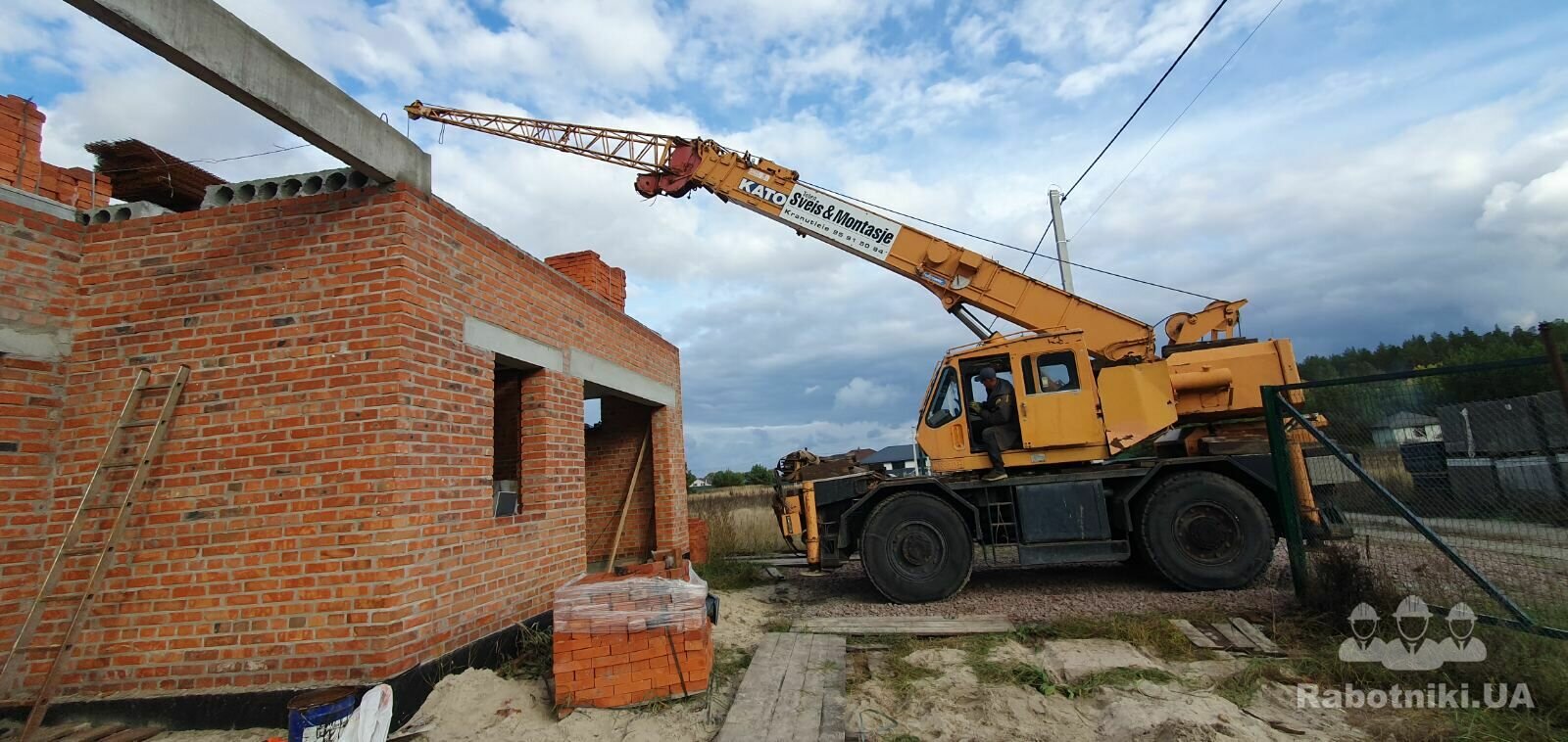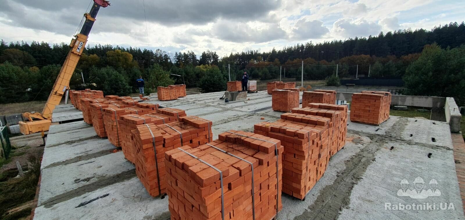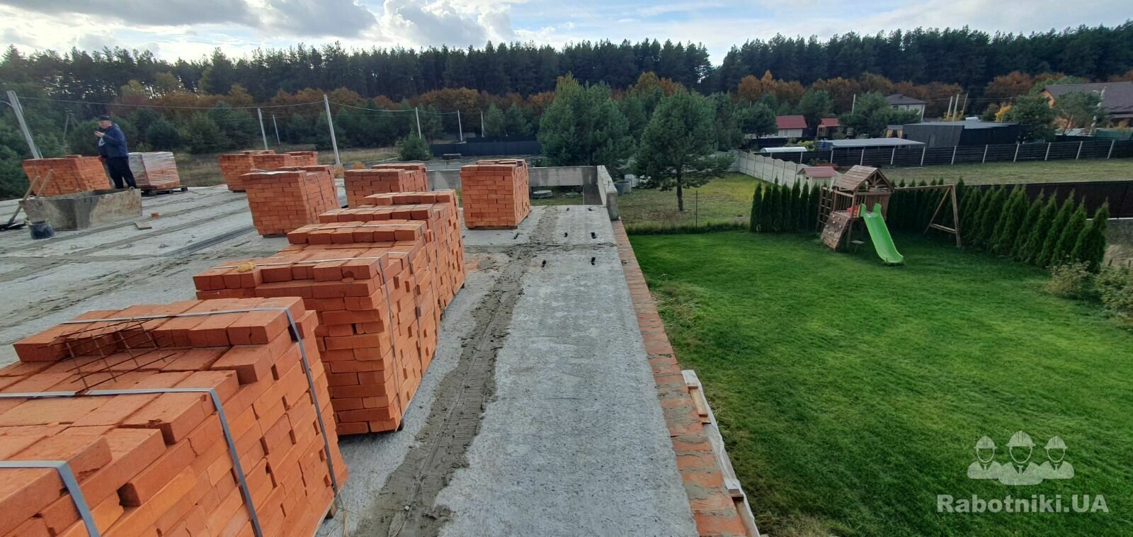 Кладка рядової цегли, чердак одноповерхового будинку: 4 ряди по периметру будинку + франтони + опорні піньки, заголом близько 6000шт.