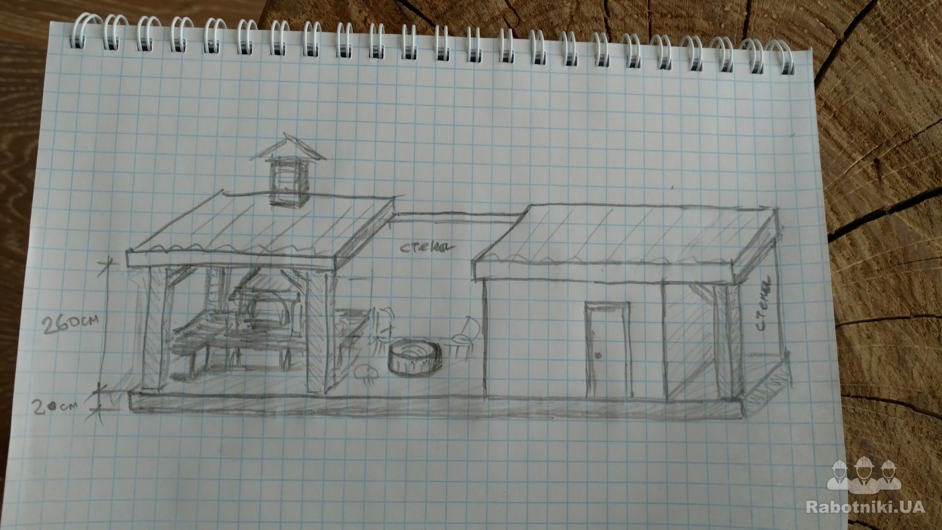 Площадь комплекса 3.5*14=49м2 прямоугольной формы включает в себя: навес с мангалом, печью, умывальником и рабочей поверхномтью, открытая площадка с кострищем, сарай с навесом для дров. Работа должна быть выполнена комплексно т.е. фундамент, сарай, мангал, навес с кровлей и отделка (террасная плитка, стены-штукатурка с покраской, обработка деревянных конструкций навеса), отмостка и коммуникации. Просьба на телефон не звонить, а писать в Вайбер или здесь.