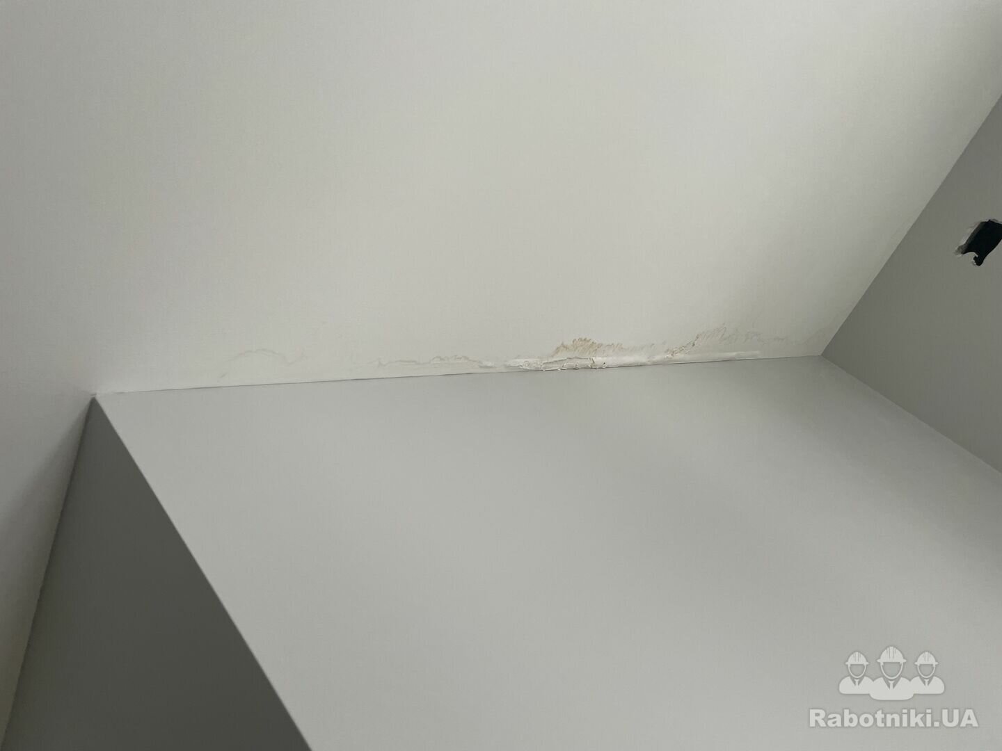Необходимо произвести восстановительные работы в кухне (пятно в длину до 0,5 метра + отошла малярная лента), ванной и коридоре (минорные пятна).