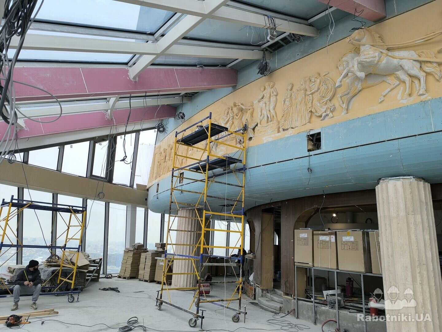 Потрібні маляри для оздоблення багаторівневої стелі з ГКЛ. Є радіусні елементи, колони прямокутні, ніши для підсвітки. Обьєм 300+ М2. Зал та лоббі ресторану. Світло є завжди. Київ, печерськ.