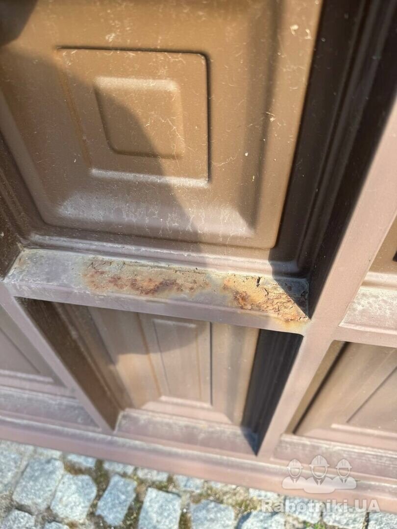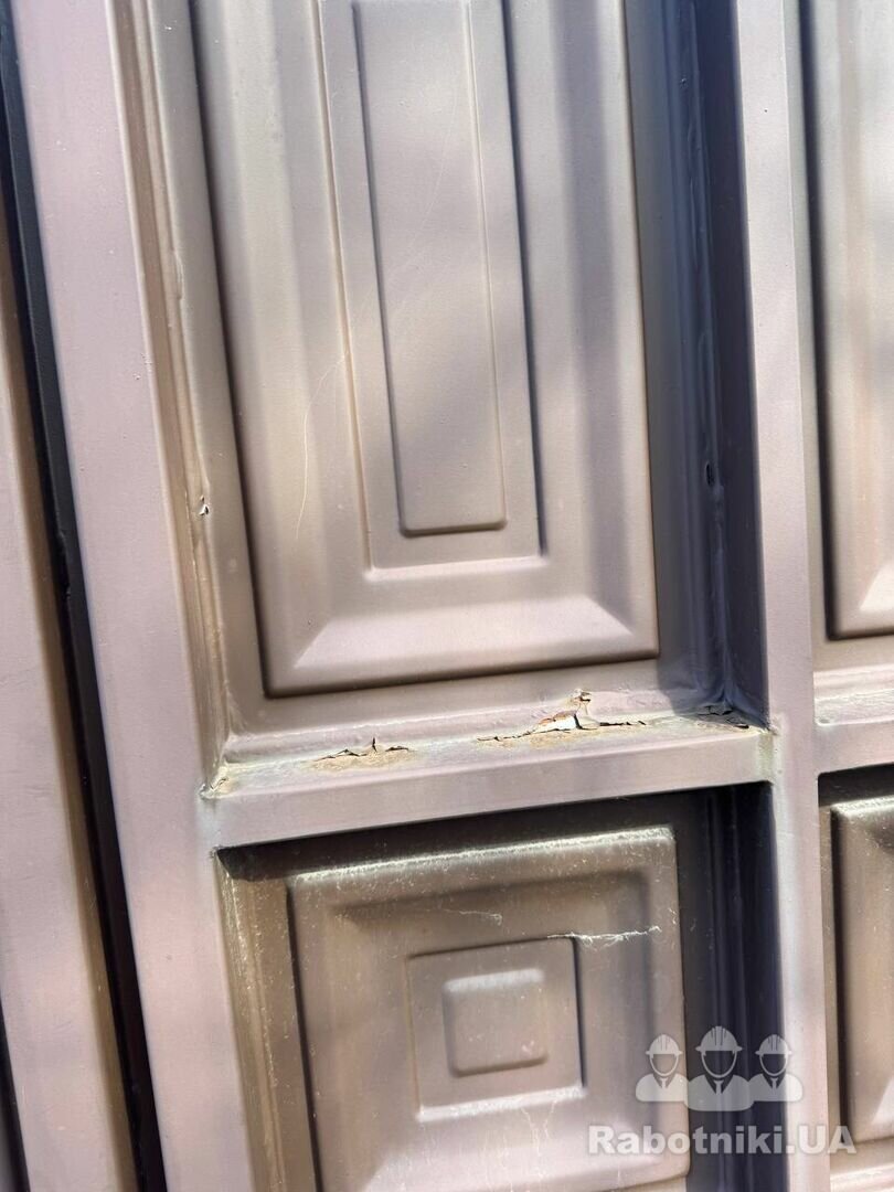 малярные работы двух ворот, их нужно снимать везти в отдел шлифовки и покраски,их просто на месте не пошлифуешь ,там никакая болгарка не подходит ,потому что болгаркой не залезть в каркас ворот