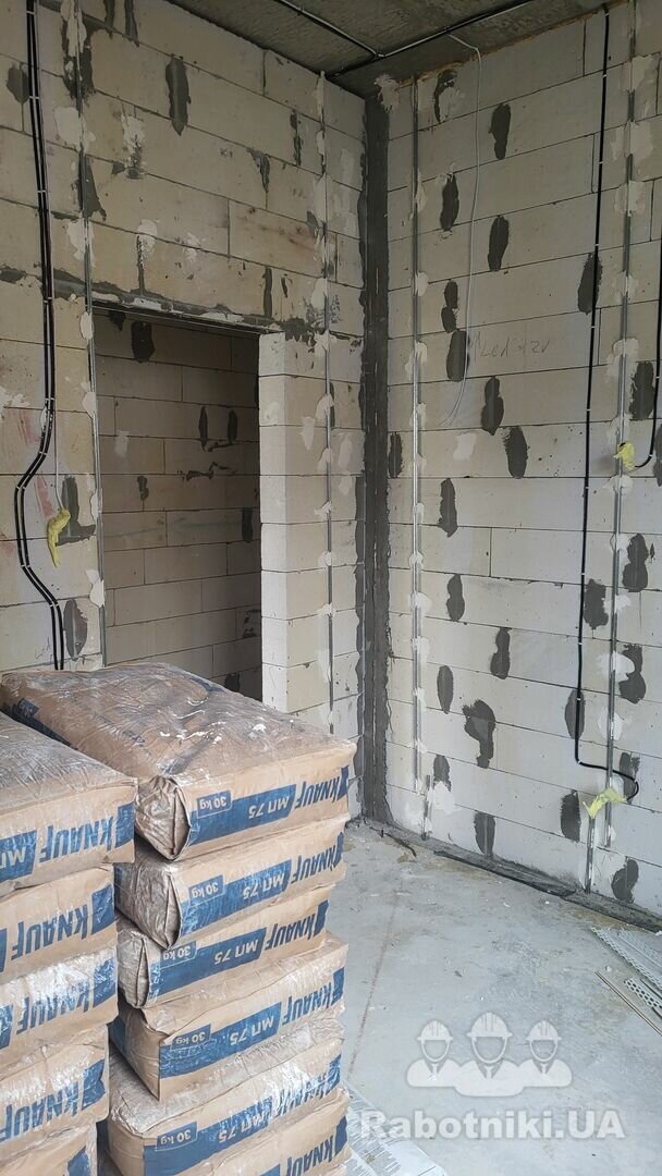 Нужен штукатур или бригада с машинной штукатурки. Гипс и цемент в санузлах. Общая квадратура которую нужно сделать около 320-370 кв и пог метров. Маяки уже выставлены по всему дому кроме одной комнаты. Все стены погрунтованы. Материал уже на обьекте. Сложилась такая ситуация, что работник по причинам здоровья не смог закончить свою работу. Необходимо в оставшихся помещениях нанести штукатурку и замыть под поклейку обоев. Пару небольших участков стен доделать (штукатурка нанесена но требуеться доровнять шагрени). Ночевать на обьекте возможности нет. Пишите цену за метр в вайбер или телеграм. В связи с моим графиком работы, могу игнорировать звонки и не ответить.