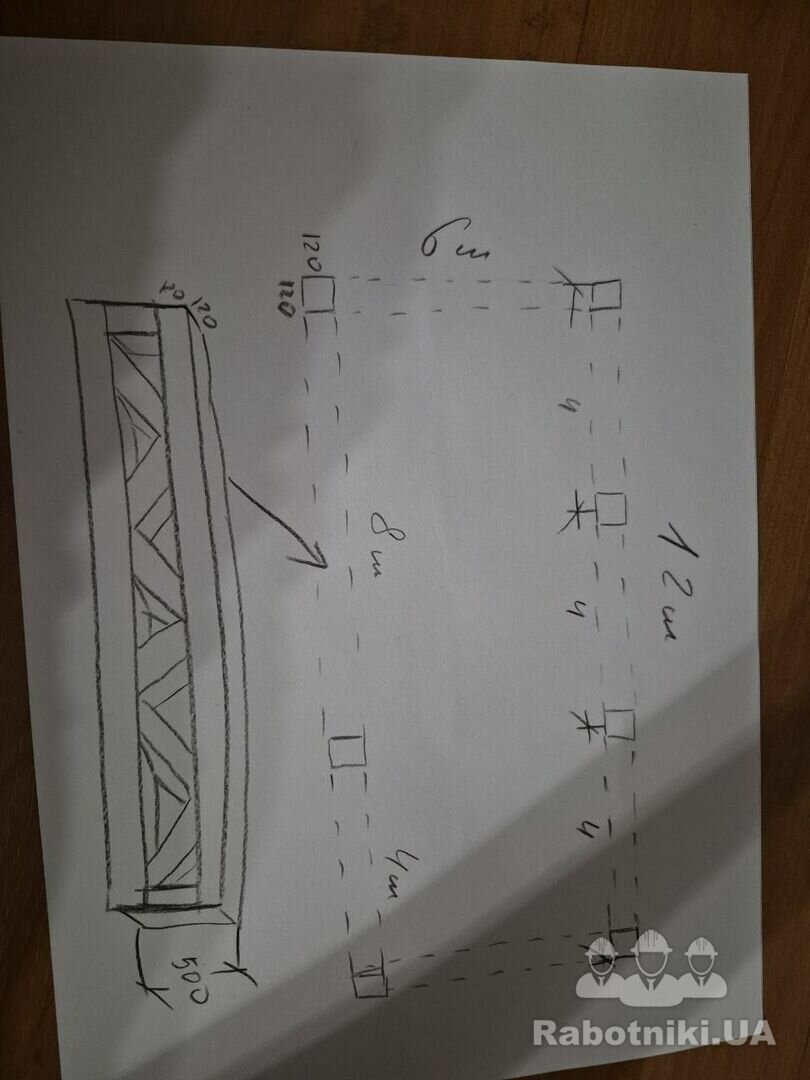 Потрібно виготовити металевий навіс, розмір 6х12. Покрівля навісу з проіфастилу. схема додається