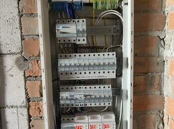 Потрібний повний комплекс послуг по монтажу електрики в чотирьох однокімнатних квартирах: починаючи від прокладання кабелю, і закінчуючи встановленням світильників, розеток і вимикачів. Квартири готуються для цілей оренди, тому ставляться прості завдання, без теплої підлоги, без автоматики, без сучасного освітлення, лише звичайні рішення, 6-8 розподільчих коробок на квартиру. Прості РЩ до 24 модулів, не більше 10 споживачів на квартиру. Економія на кількості опцій, но не на якості матеріалів: силовий кабель ЗЗКМ ВВГнг 3х2,5 розетки, 2х1,5 світло; розподільчі щити і модульні пристрої Hager. РЩ розводяться ПВ-3 або 10 мм2, або 6 мм2, в залежності від а-вимикача на вході (50А або 32А). Додатково: прокладання витої пари (3-4 точки на квартиру).