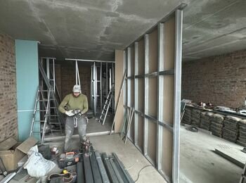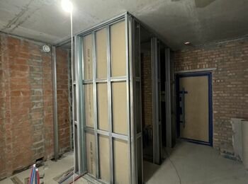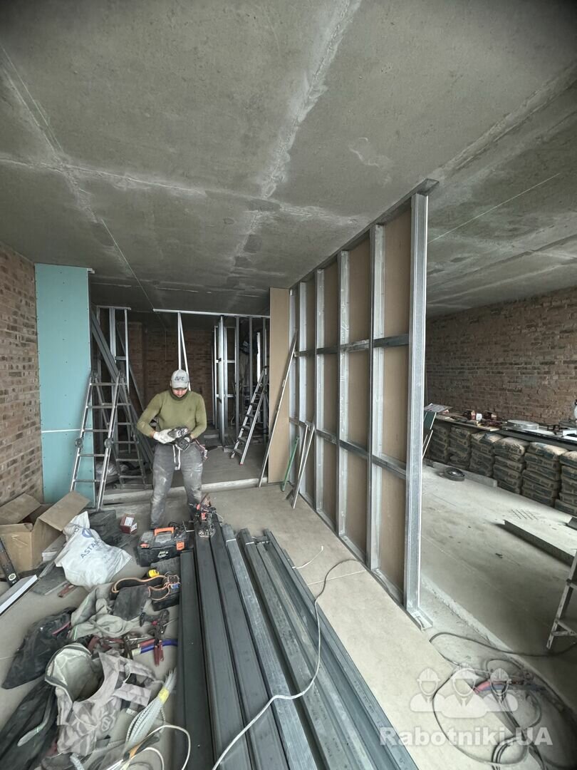 Обсяг 6500м2 гіпсокартону, більшість стін без утеплювача. Висота перегородок 4,95м. Матеріал вже весь на обʼєкті.
