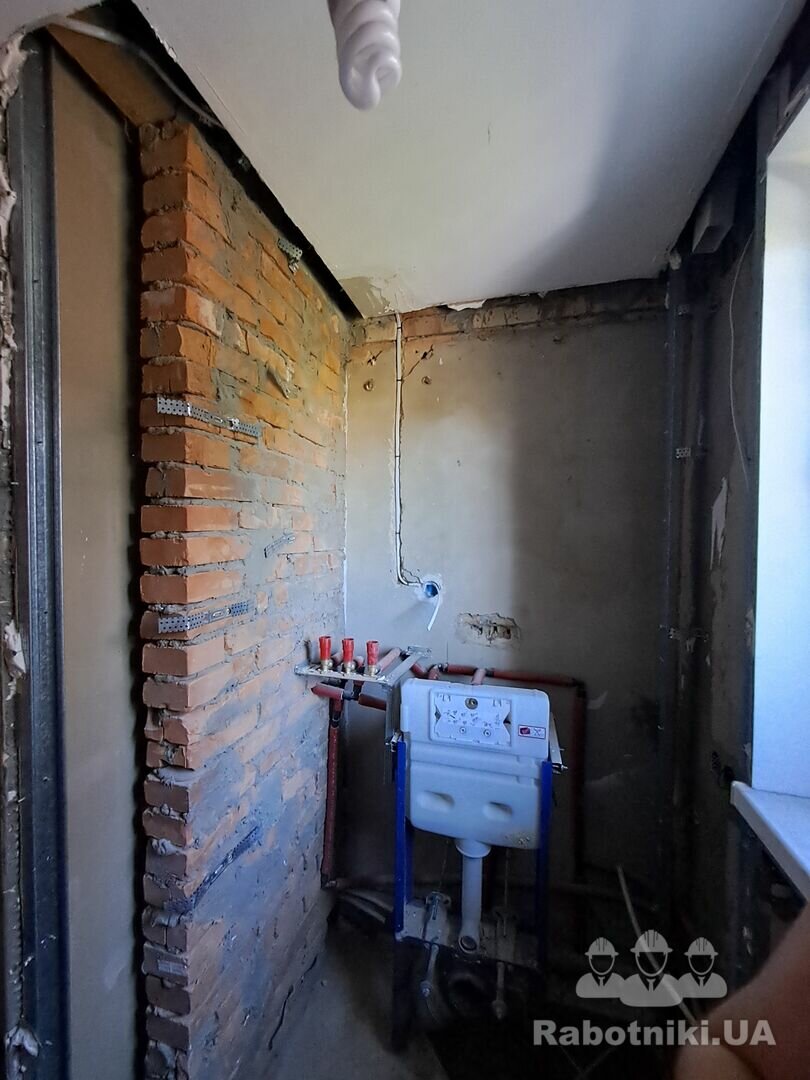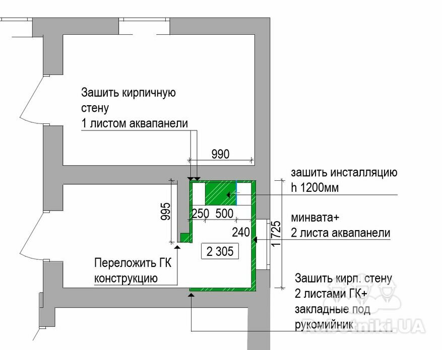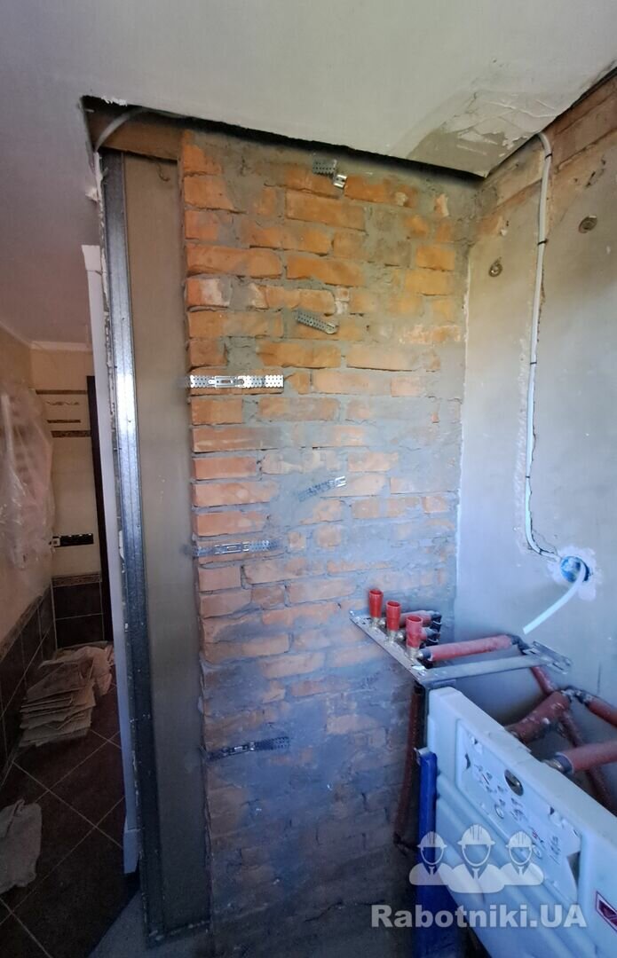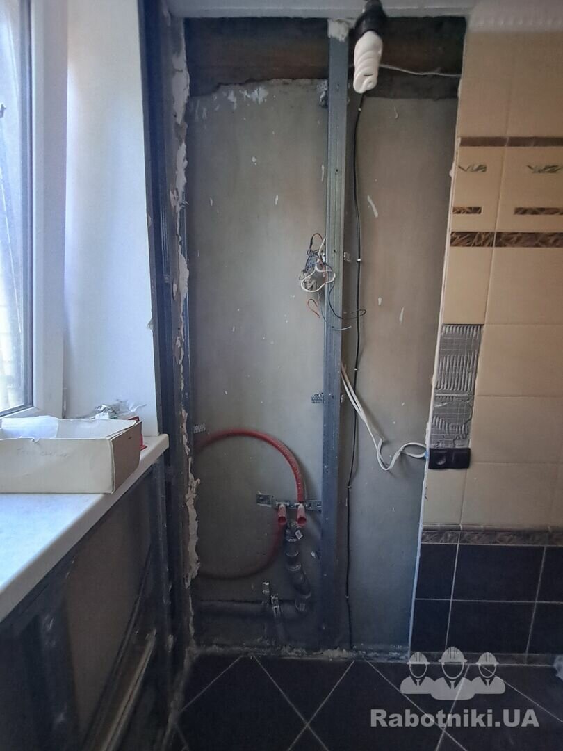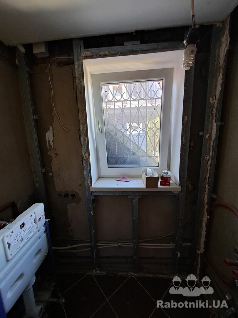 Необхідно змонтувати ГК перегородку у санвузлі та зашити ГК/аквапанеллю стіни ( в тому числі зашити інсталяцію, зробити закладні під монтаж рукомийника підвісного. див фото).