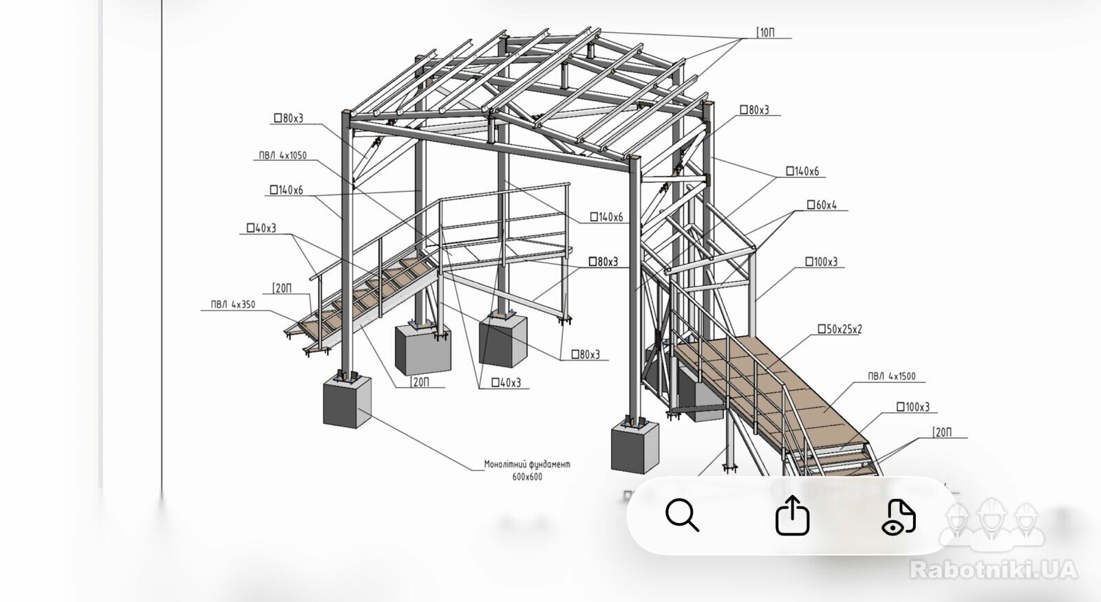 Потрібно зробити металеву конструкцію. При відправці повідомлень, прошу вказати вартість за 1т. Орієнтовна кількість металу - 35-40 т. Аксонометрична схема конструкцій додається