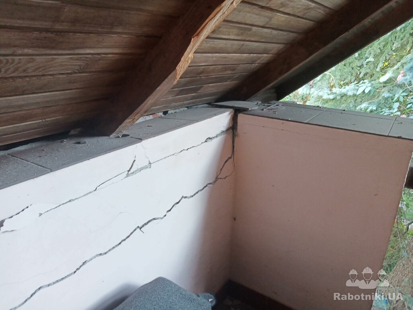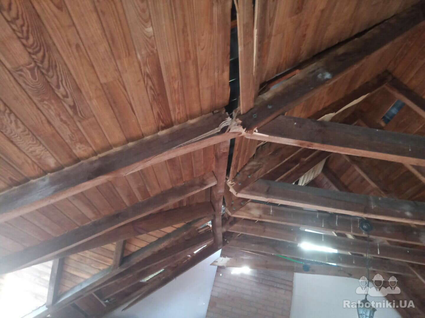Двоскатнй дах площею 100м кв. Після ракетного обстрілу розірвані крокви. Необхідно демонтувати дах, і змонтувати новий