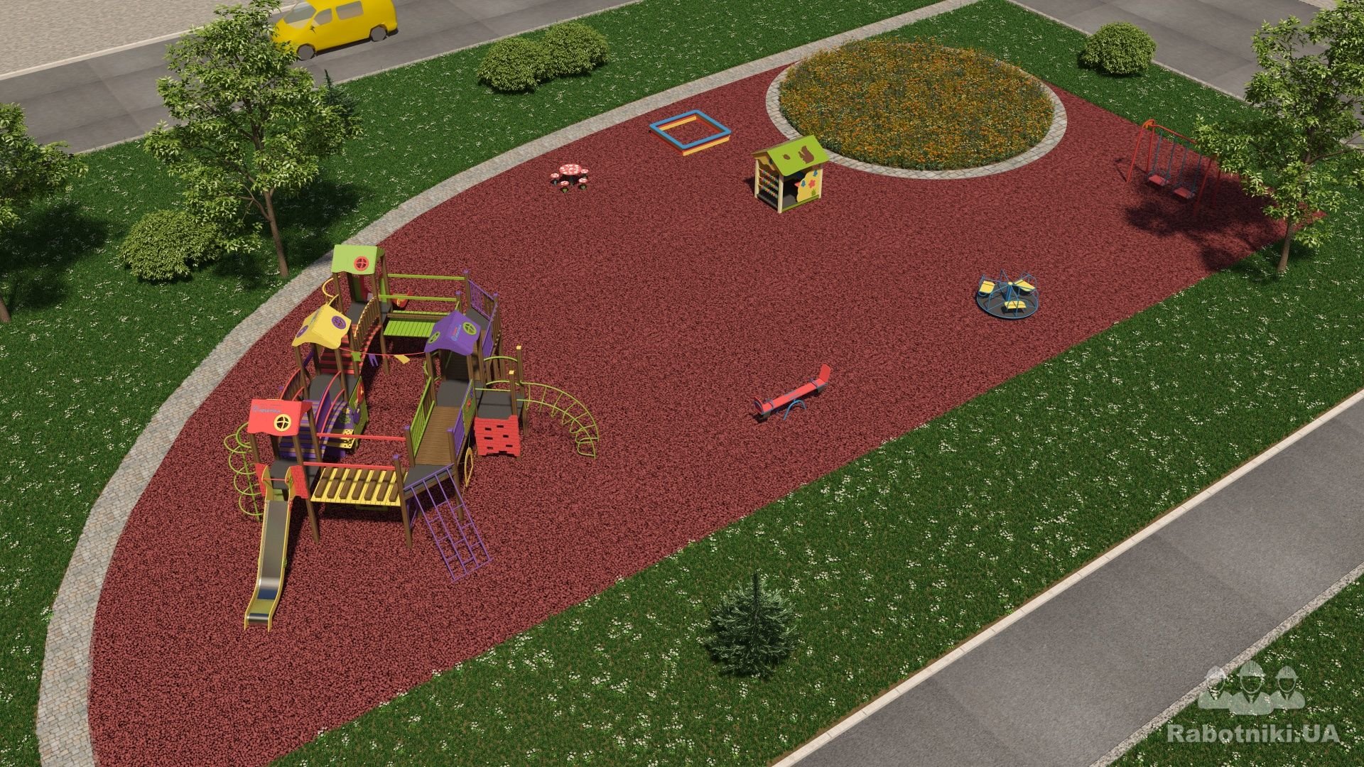 Установка детских игровых элементов в парковой зоне. Состав площадки: качели двойные, карусель, песочница, домик-беседка, игровой комплекс на четыре башни с горками, балансир, столик со стульчиками мухомор. Оборудование бетонируется ( объем 3 м.куб.). Материалы Ваши, вывоз оборудования со склада в г. Буча Вашим транспортом (ориентировочно 5т.).