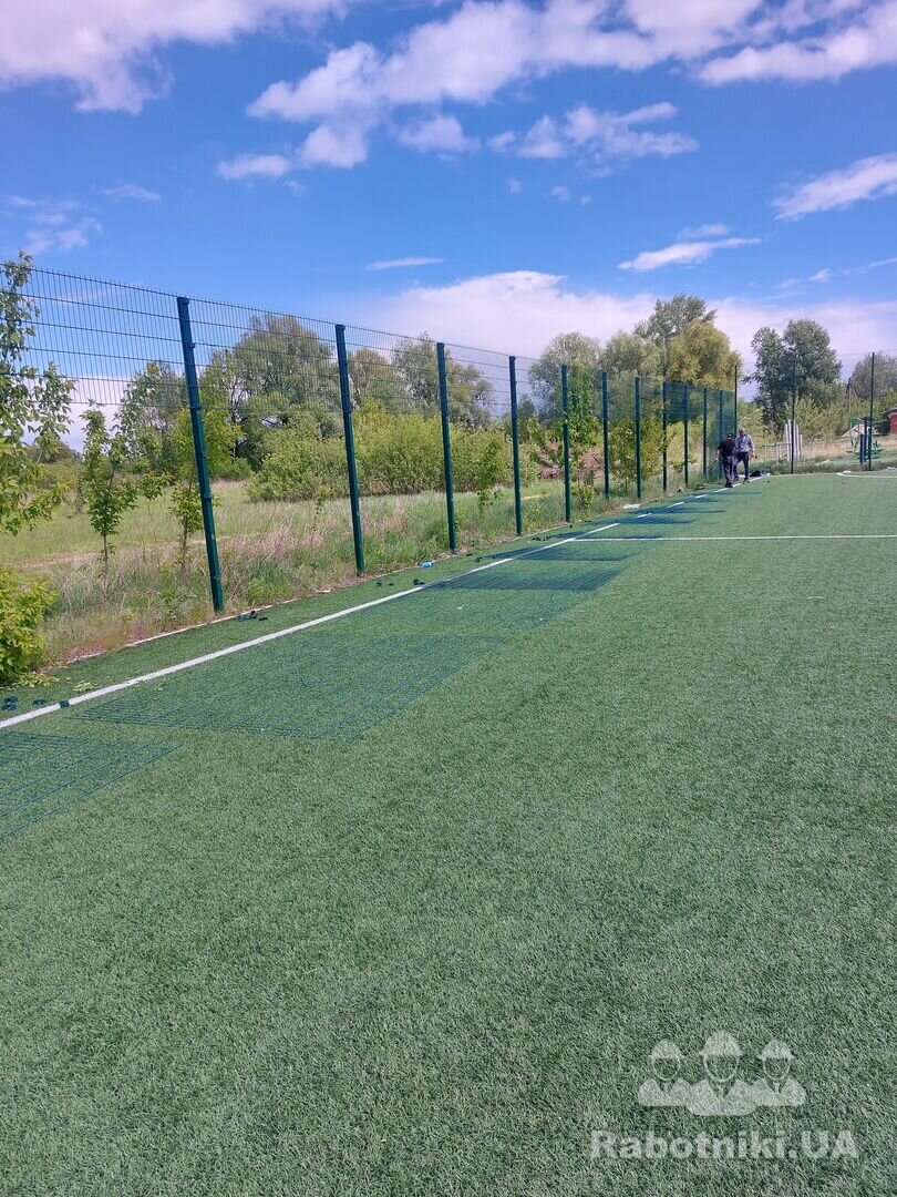 Потрібно виконати монтаж огорожі спортивного майданчика, висотою 3.5м без зварювальних та фарбувальних робіт . Необхідний інструмент надаєм розмір майданчика 28х11.
