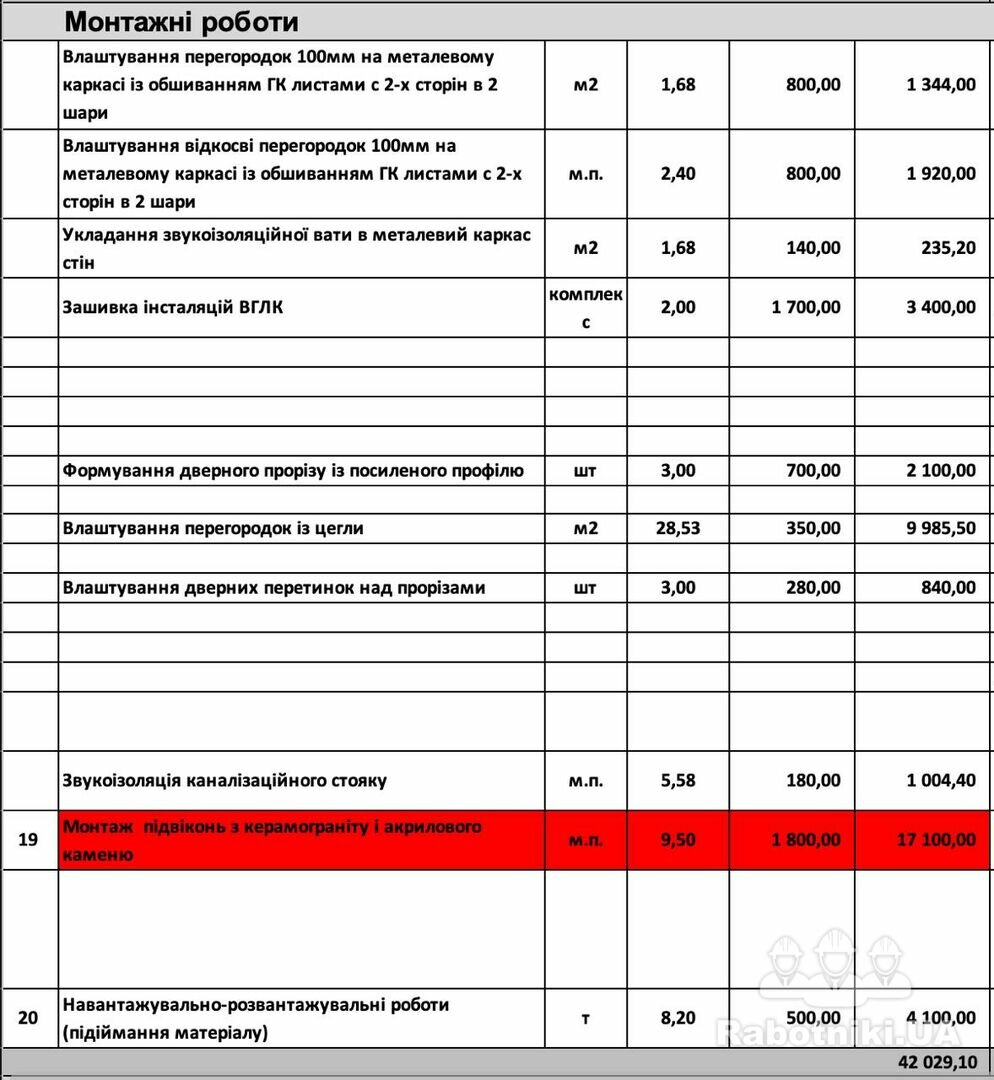 Монтаж перегородок з цегли (Новые Петровцы)