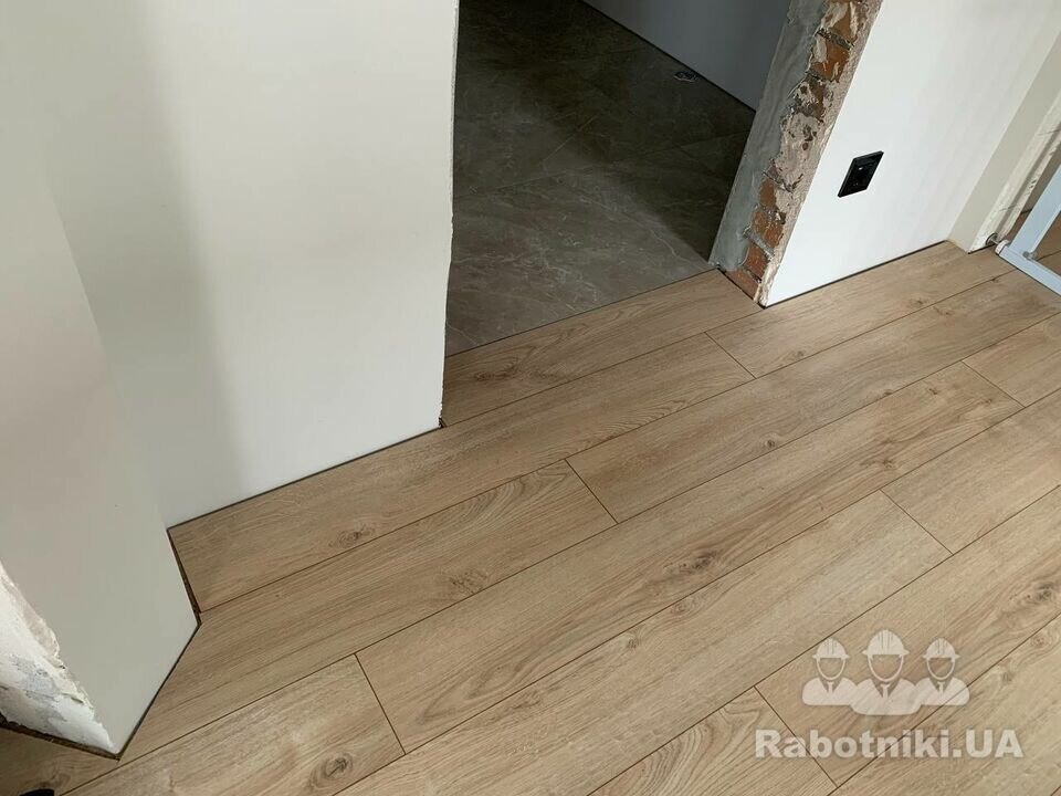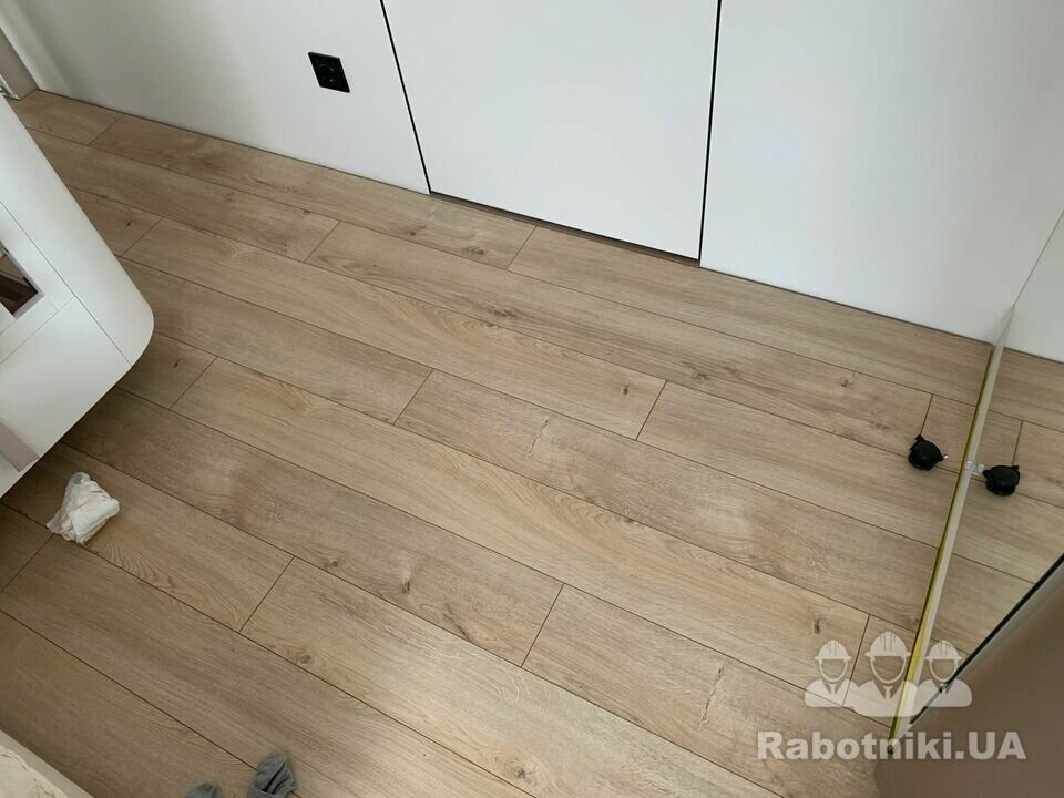 Необхідно зробити плінтус - пробковий компенсатор на підлозі із ламінату по периметру всього поверху. Відповідно підрізати ламінат і все що потрібно для цього. Фото підлоги додаю. Загальна довжина близько 40 метрів.