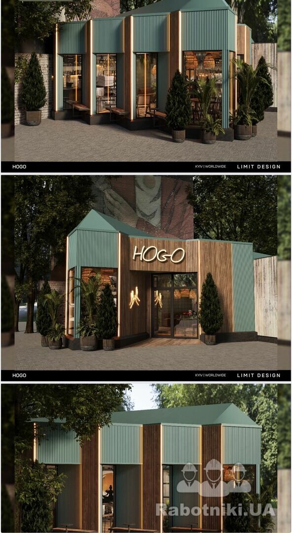 Вітаю! Шукаємо майстра, який зможе виконати монтаж елементів профнастилу (на фото під дерево) на існуючий фасад приміщення кавʼярні по проекту.