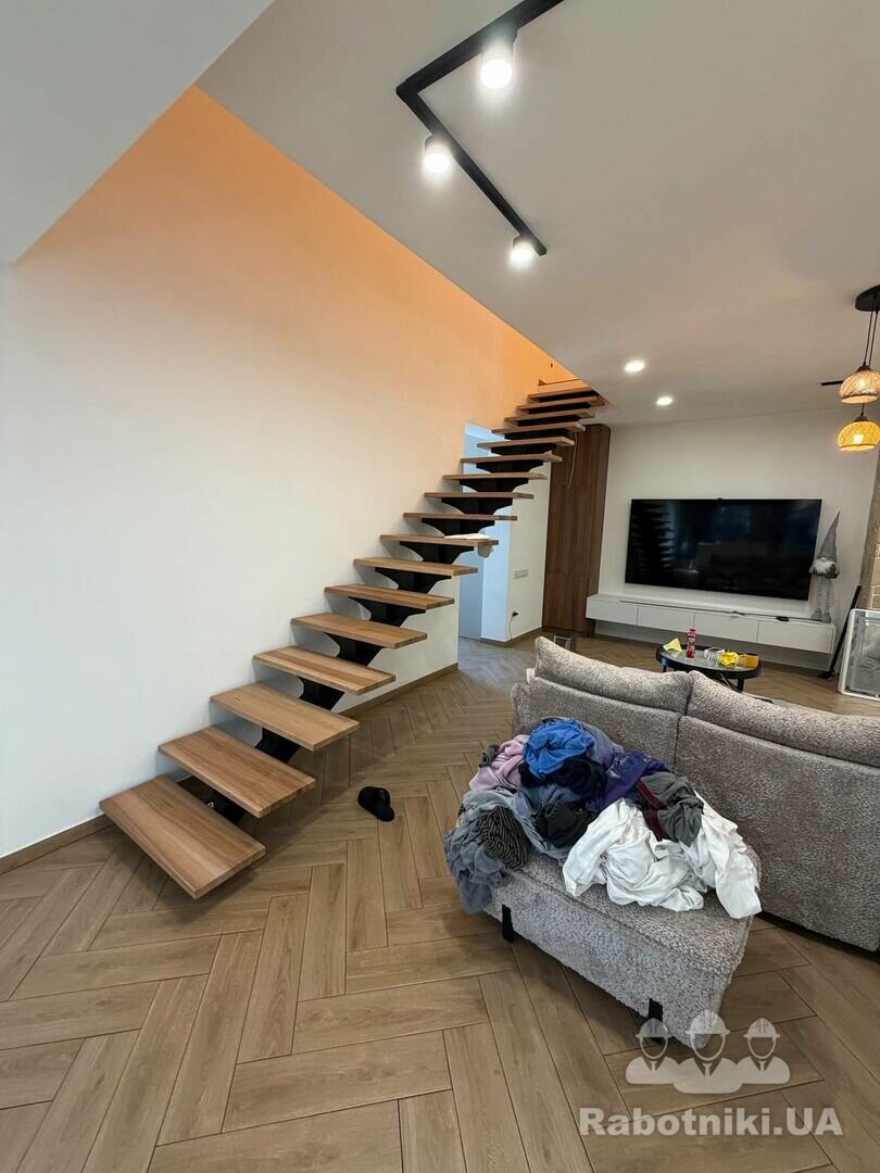 Нужно смонтировать стеклянные перила, 17 ступеней, длина 5800 мм, ограждение 4950 мм