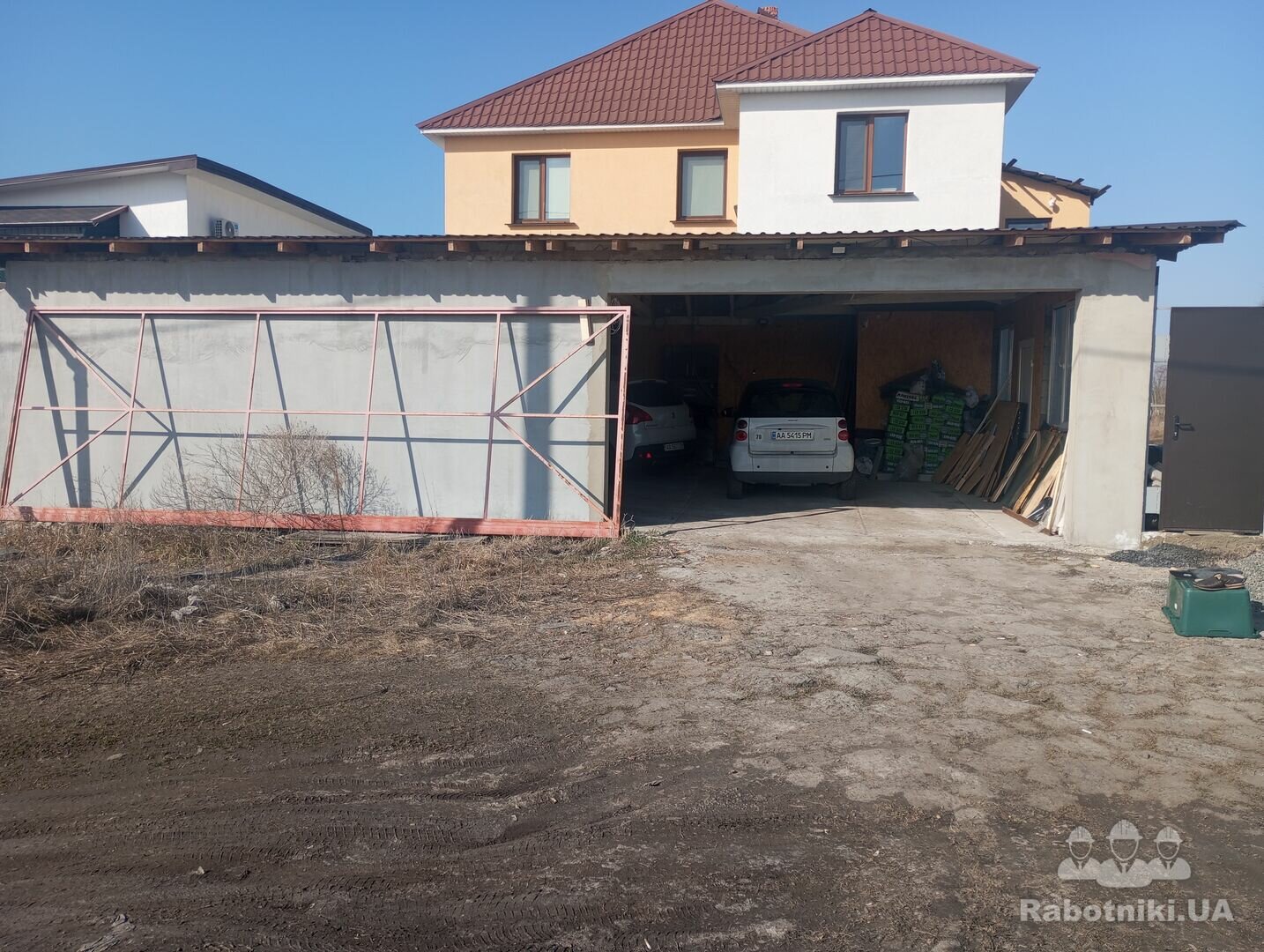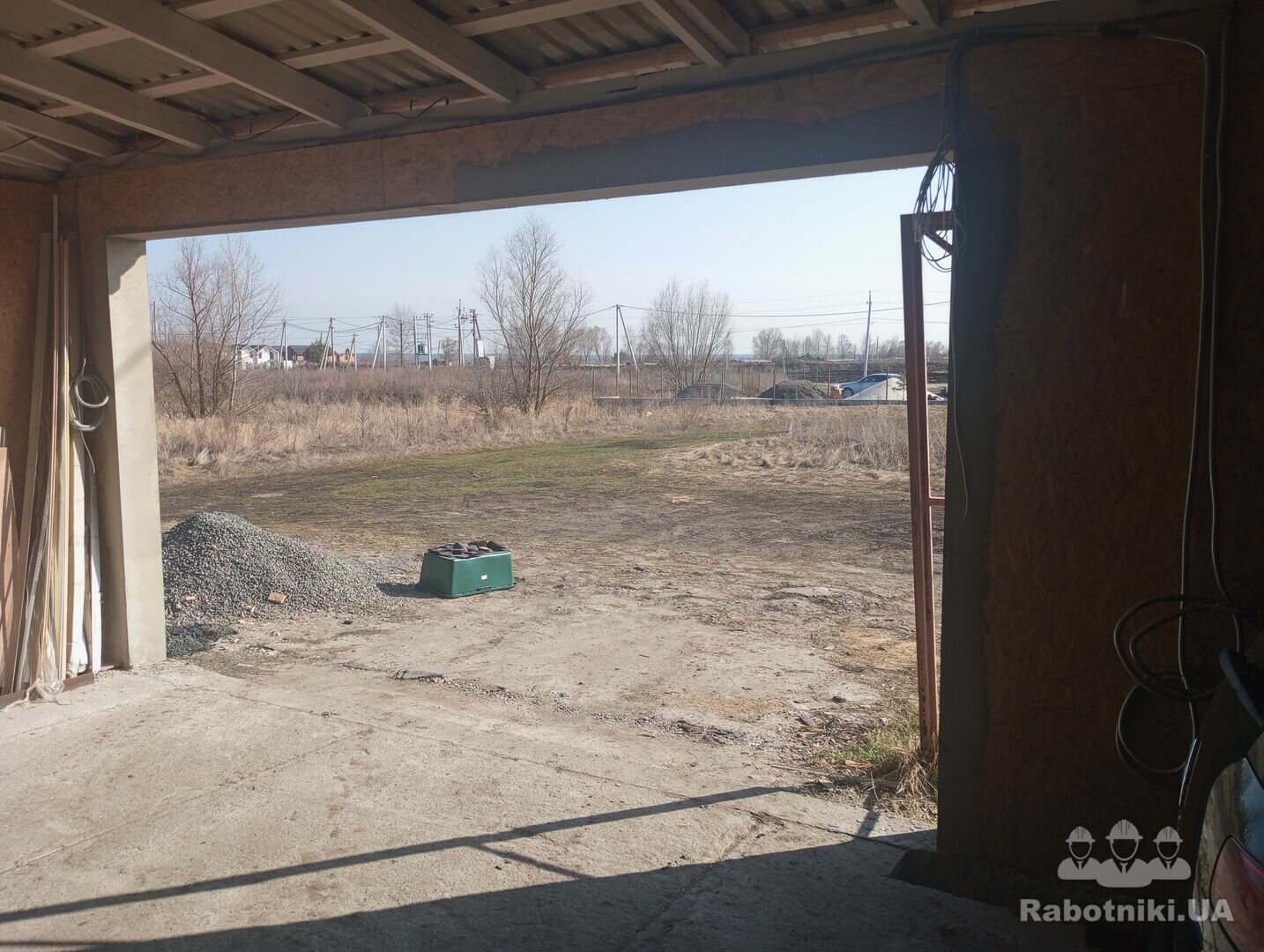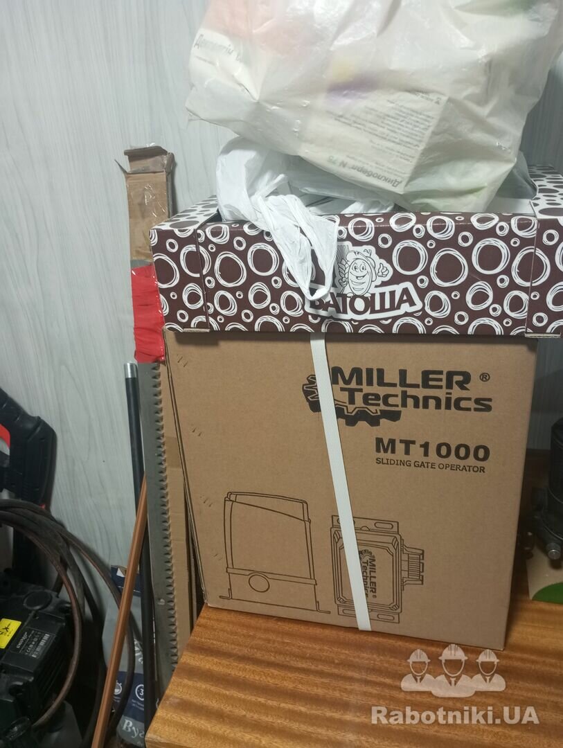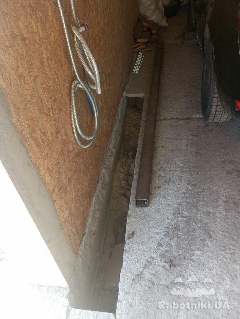 Улаштування фундаменту під ворота та стовб, монтаж відкатних воріт, монтаж автоматики ( проводка підведена)