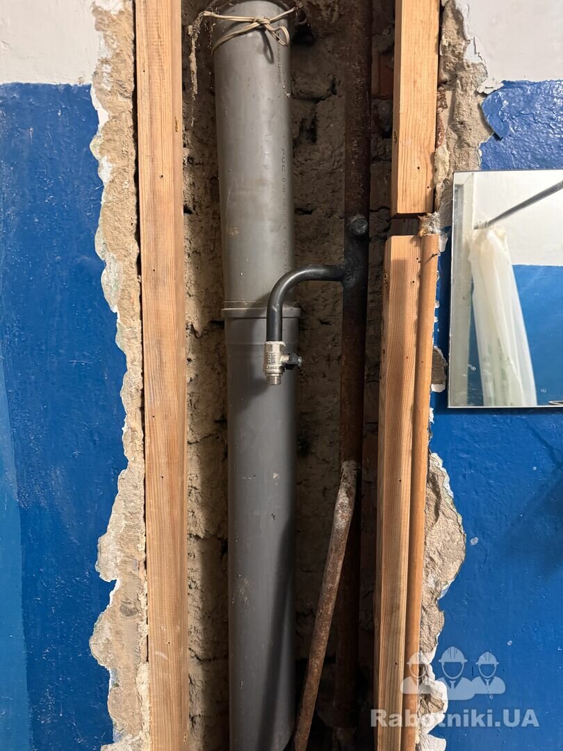 із мойки в кухні, пральної машинки, унітазу, умивальника, пральноі машинки та ванни у ванній кімнаті зробити водовідведення із заміною чугунного тройніка на пластиковий.