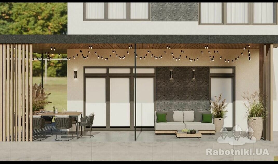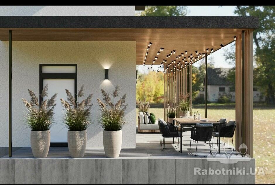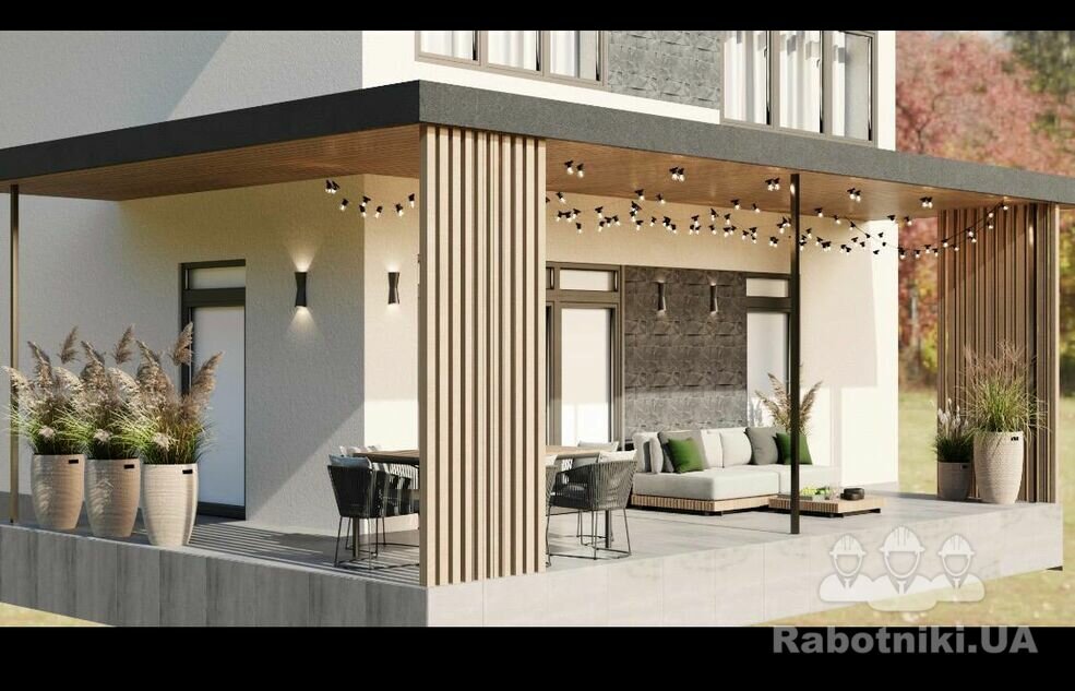 Необхідне накриття для тераси під ключ Площа по даху накриття 30м.кв. Каркас із металу Накриття проф лист Підшивка і т.д.
