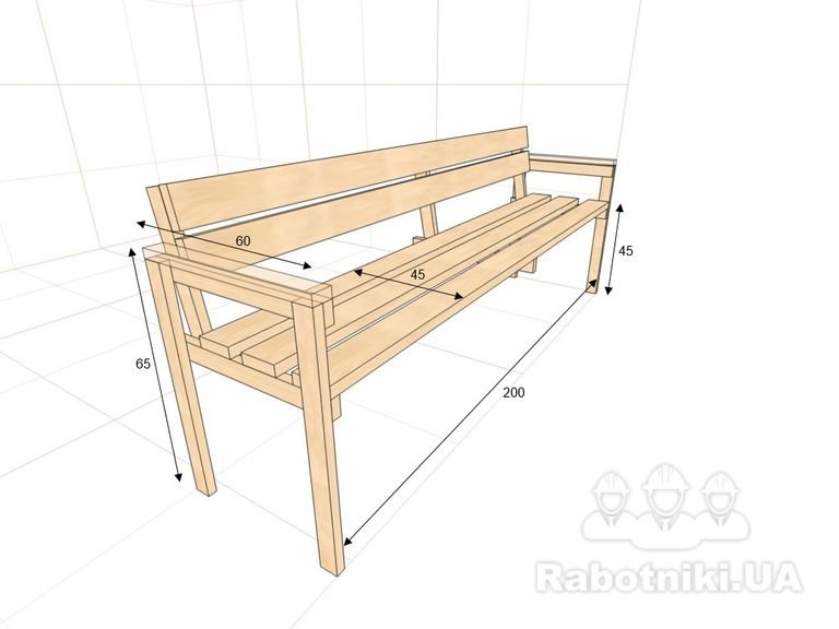 Где вы нашли такое убожество. Очень слабая конструкция . При эксплуатации долго не протянет. И попробуйте "посадить" на такую лавку 3 человека, она прогнется, влучшем случае. Если делаете для себя, закажите хороший и надежный проект лавки. С ув. Олег