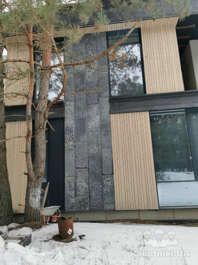 Монтаж камню (кронштейн, профіль, камінь, вирізаємо в пінопласті отвір під кронштейн, після монтажу задуваємо піною, утеплення відсутнє, порізка камня рахуємо вартість окремо) -290