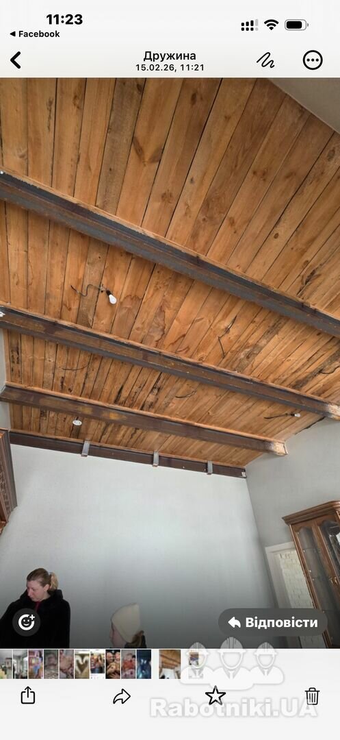 Зроблена чорнова стеля , двотаур 20 , підбита сосновою доскою,фото прикріплене, задача: підшити фанерою 12 мм вирівняти стелю,підготовити під поклейку деревʼяного шпону, зашити металеву балку фанерою 200/140(короб) і все об клеїти шпоном 1,5 мм