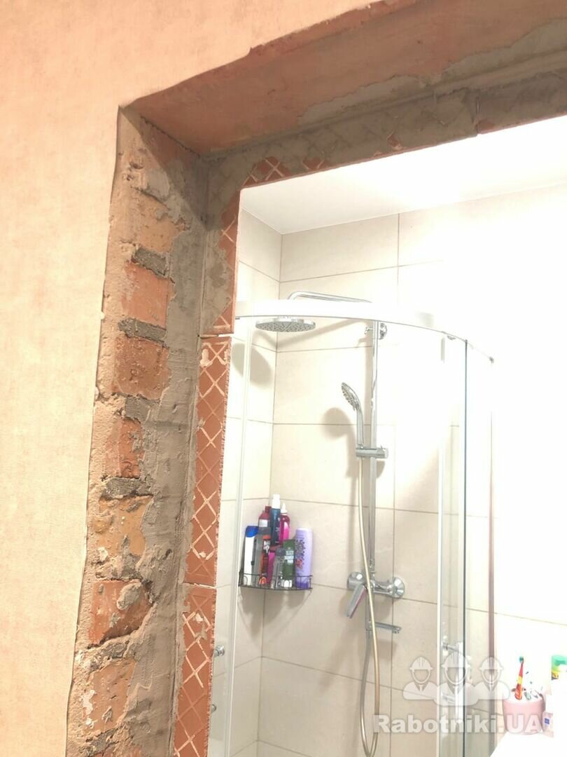 Треба обрізати плитку яка лишня настінна в дверному пройомі(зліва та зверху,лишня плитка 5 см-фото закріпив).