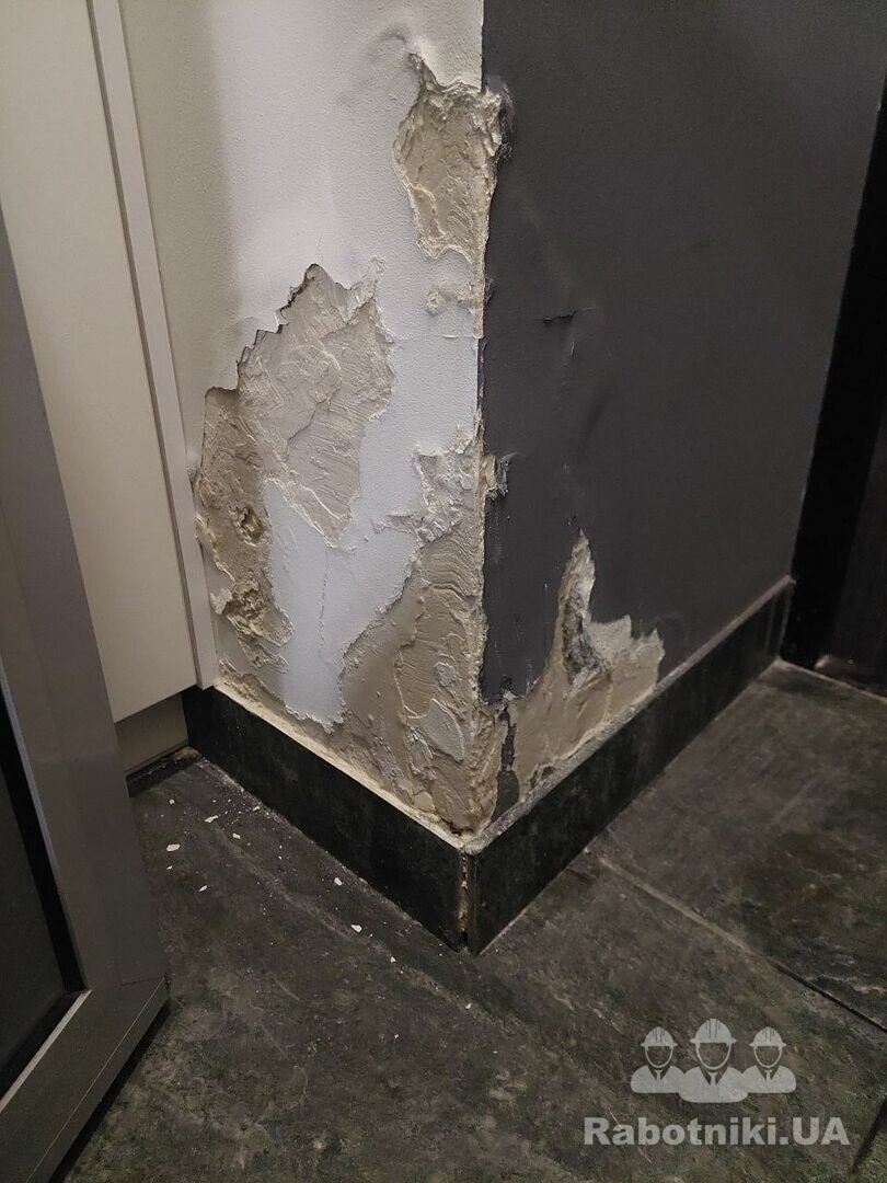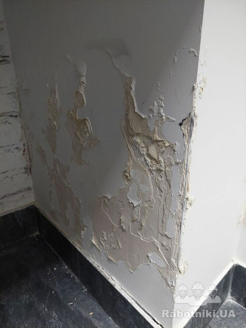 Стіна бетонна. Потрібно позбивати шпаклівку в місцях де зіпсоване покриття грибком. Потім погрунтувати антигрибковим засобом, пошпаклювати і пофарбувати стіни. Терміни та оплата - ДОГОВІРНІ!