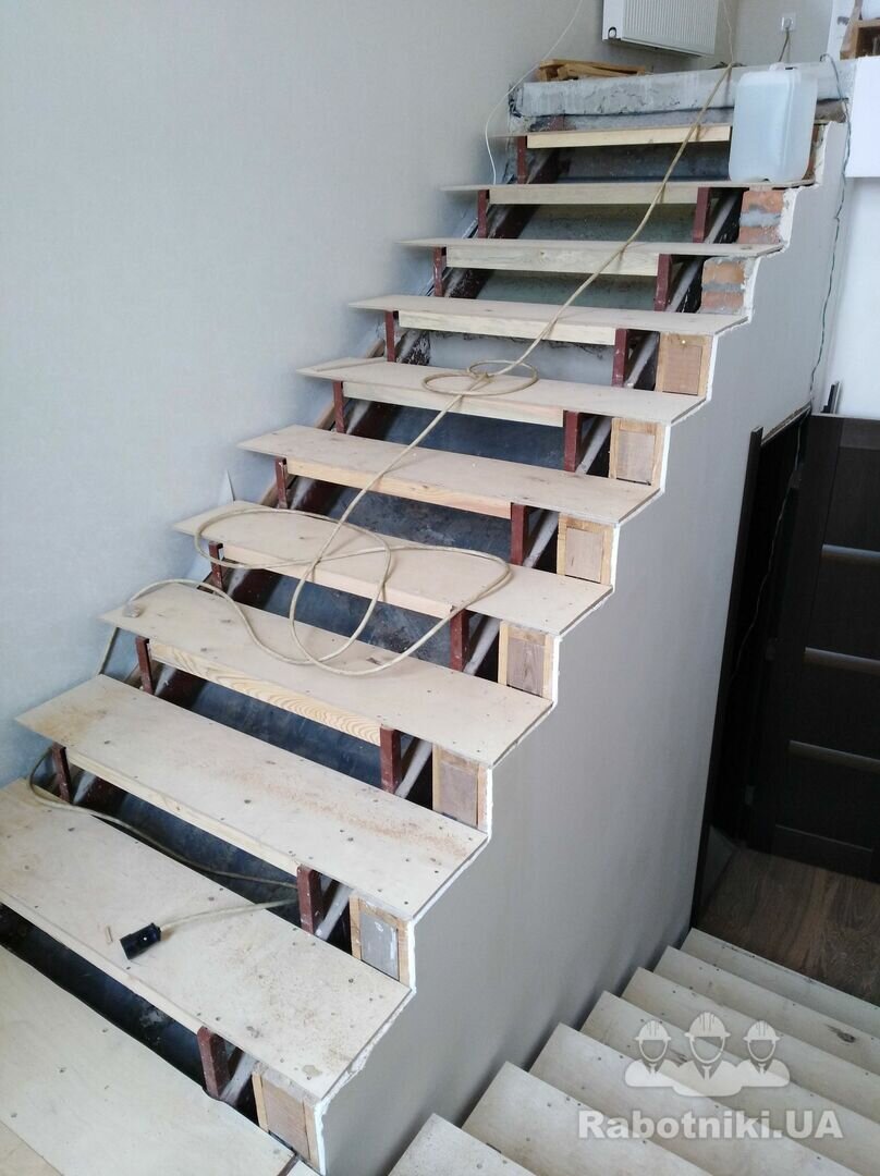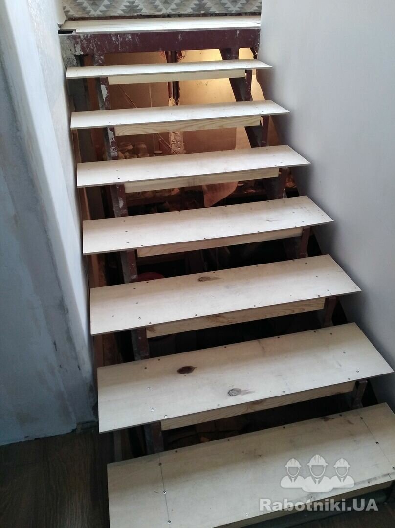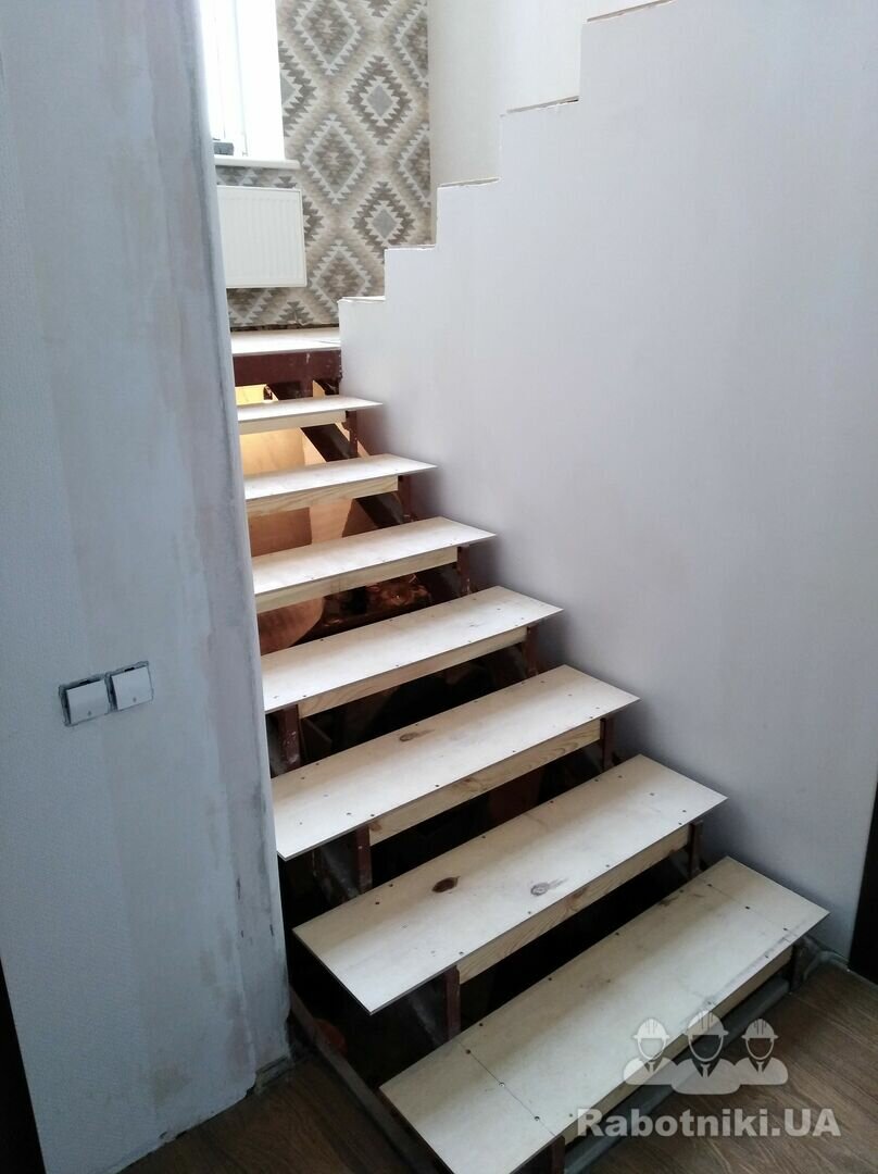 Обшивка металической лестницы гипсокартоном, с последующей шпаклевкой (Белогородка)
