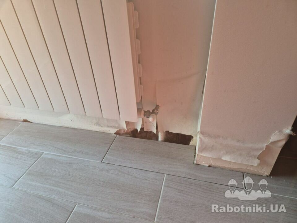 Потрібно частково переклеїти шпалери в корідорі та в кімнаті, зашпаклювати дірку під батареєю, якщо є обладнання додатково прирізати та приклеїти плінтус. Оплата Дговірна