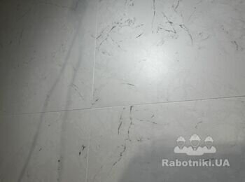 Необходимо подкорректировать швы двухкомпонентной затиркой, формат плитки 600х1200 и 1200х1200, также сделать внешние углы, пример на фото