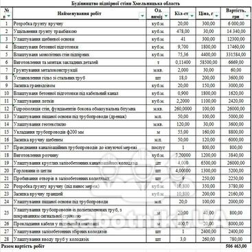 Запрошуємо до співпраці підрядників або бригаду будівельників для влаштування підпірної стіни згідно з проєктною документацією.