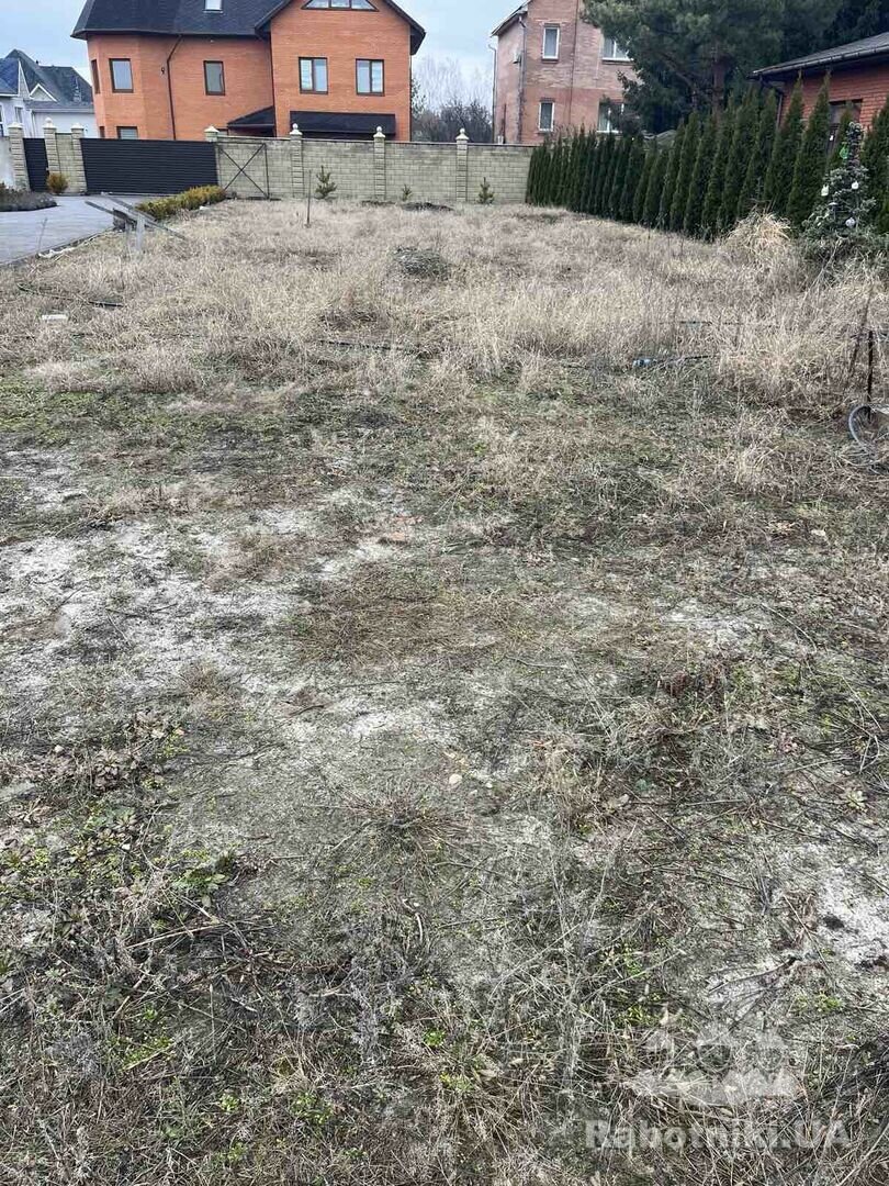покос, травление сорняка, культивация, выбор корней сорняка и камней, планировка земли, удобрение, посев травы, трамбовка