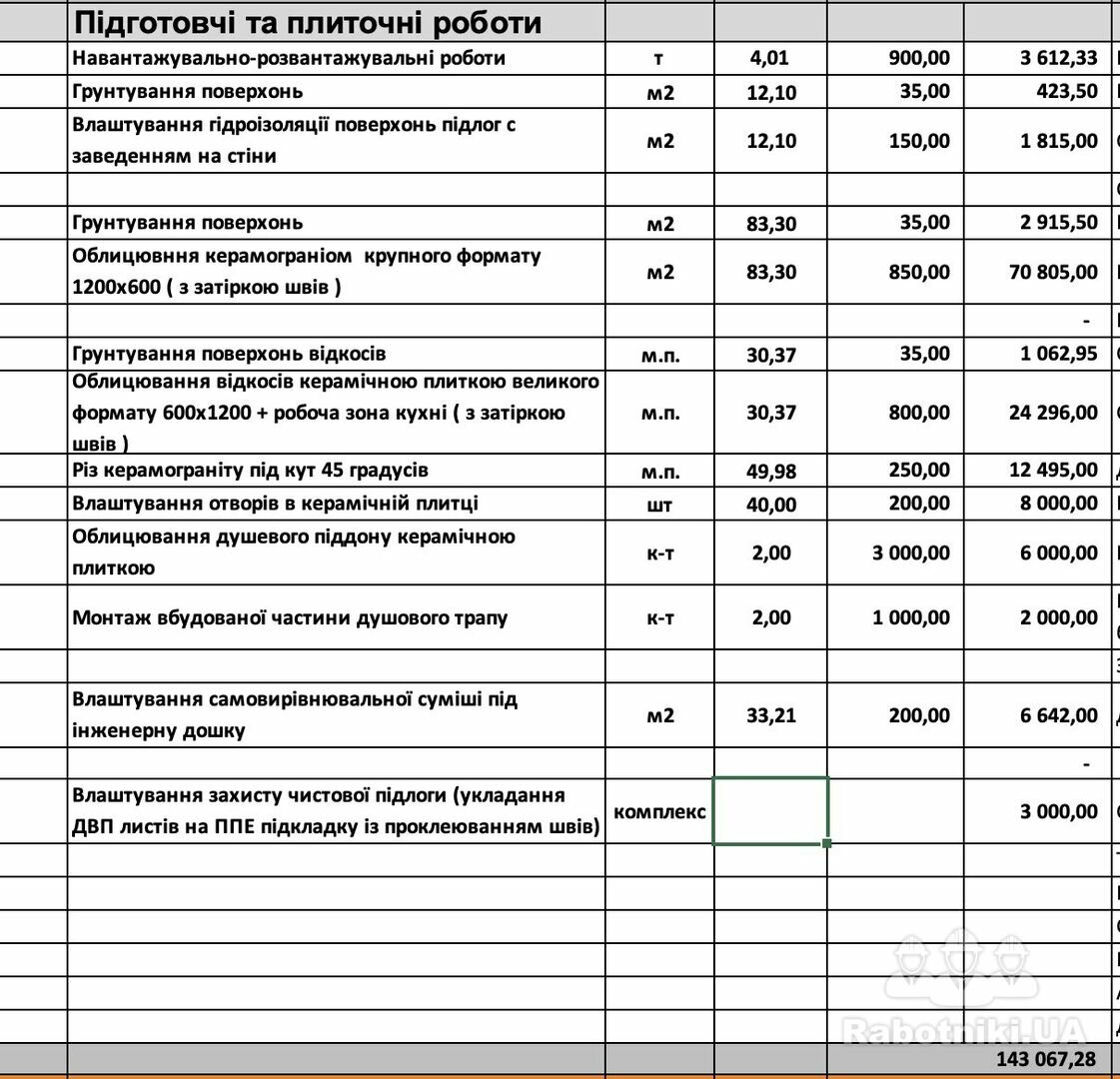 Плиточні роботи у ЖК Балатон. У будинку 85 м2 потрібно укласти керамогранітну плитку у двох санвузлах і на підлозі у всьому приміщенні.