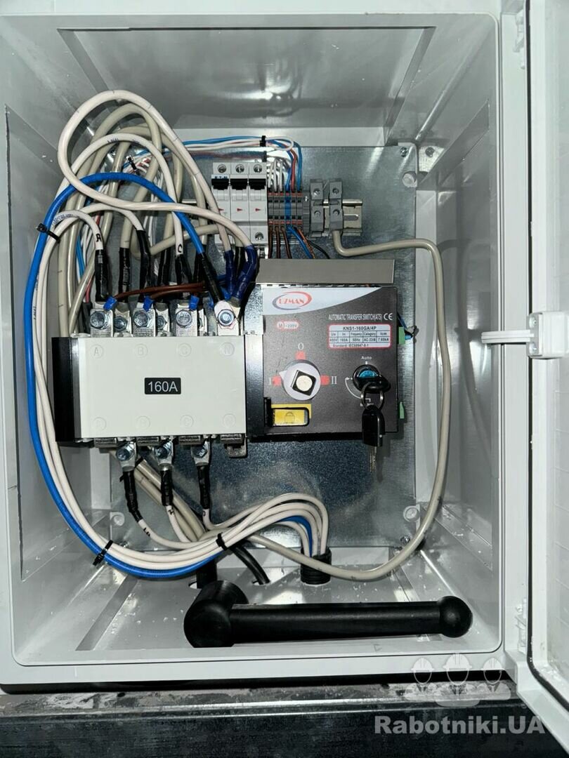 Необходимо отключить генератор 20квт, снять трасу с фасада сдания и подключить к щитку нового помещения