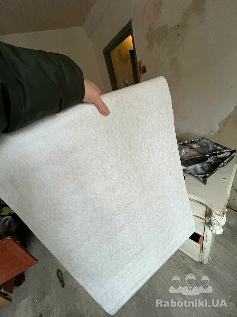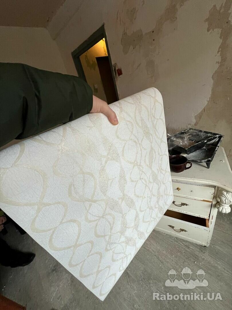 Демонтаж шпалер 6м2 х 100грн = 600грн Локальна підшпалківка стін(глибокі дири) 52,9 х 70грн = 3703 Поклейка шпалер з грунтуванням 52,9 х 150грн = 7935 Частина бумажні шпалери інша частина фрізелін.