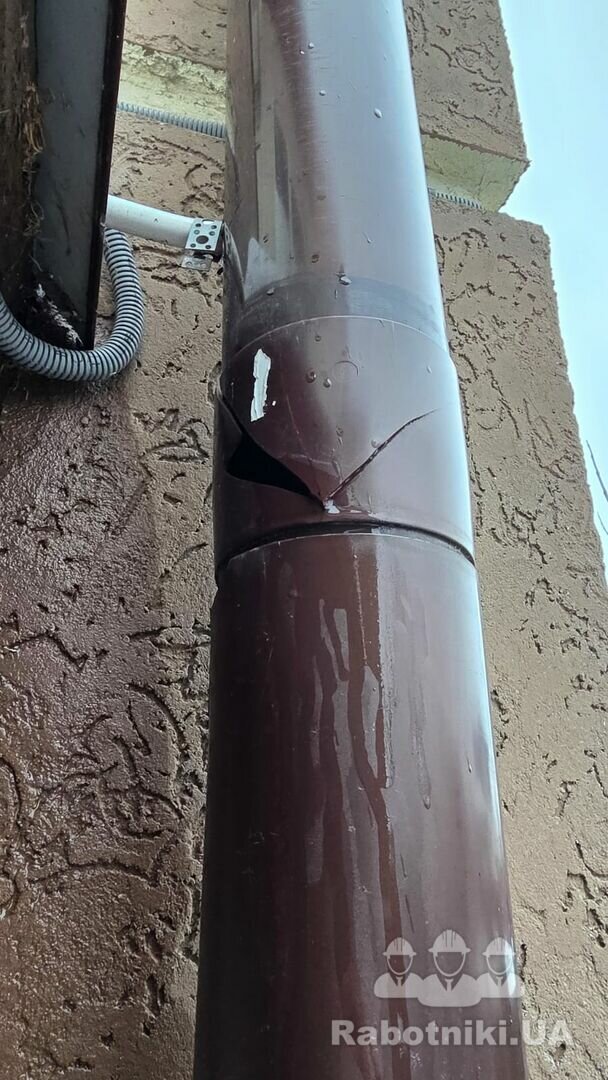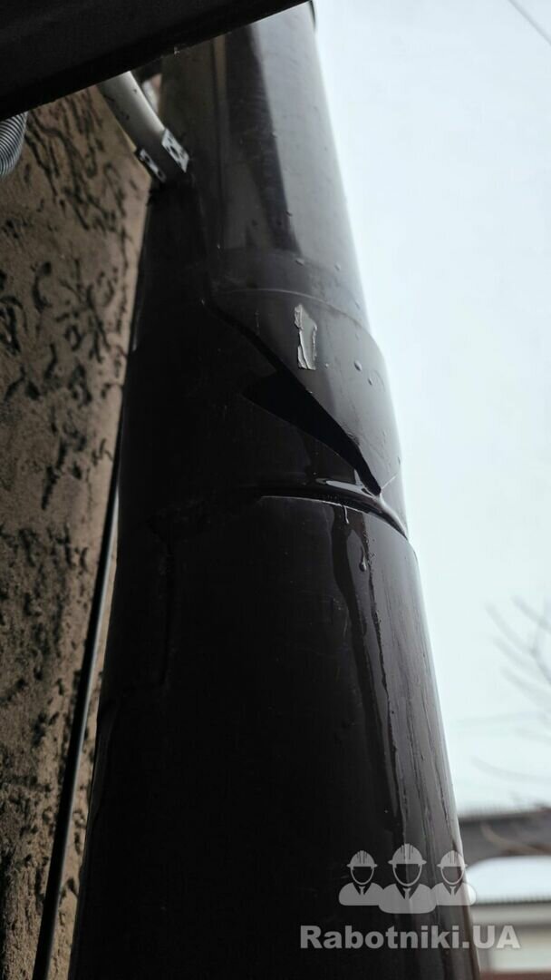 Заміна пошкоджених елементів (ймовірно коліно/відвід або коротка ділянка труби + за потреби муфта/ущільнювальні кільця).