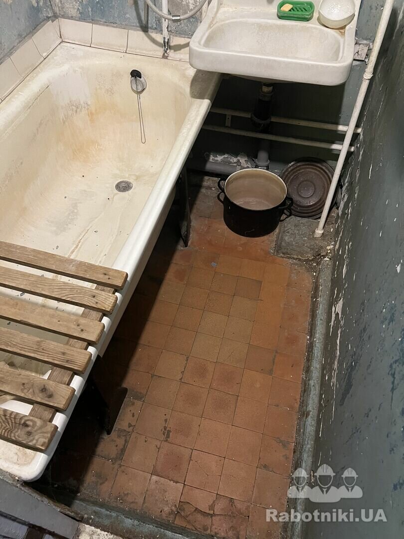 У ванній та туалеті тілтки підлогу.Демонтажні роботи зробимо.