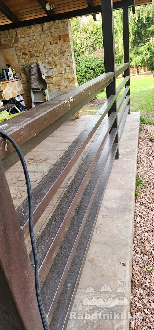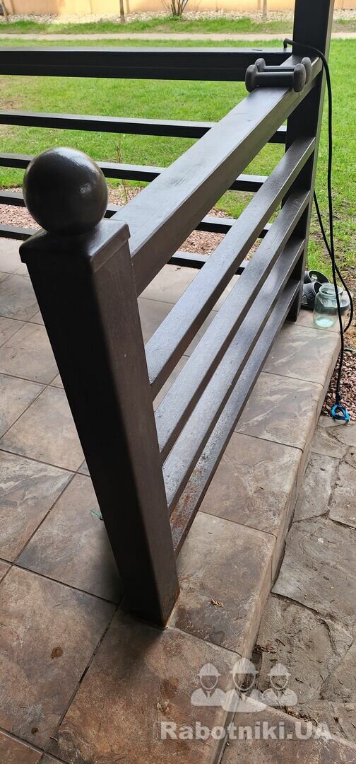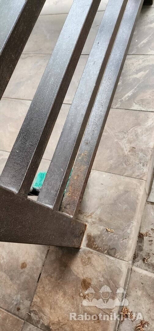 Потрібно виконати фарбування металевих перил у бесідці на території приватного будинку. Обсяг робіт: підготовка поверхні (очищення від бруду, пилу); зачистка місць з іржею та відшаруванням старого покриття; за потреби ґрунтування; фарбування перил по всьому периметру. Стан: перила металеві, експлуатація на вулиці, є локальні ділянки іржі та потертості