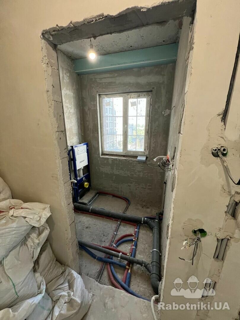 1)Цементно піщанна стяжка з піностеролом та армуючою сіткою 2.86м2 = 2500грн. 2)Заливка піддону під душ 1шт = 1500грн
