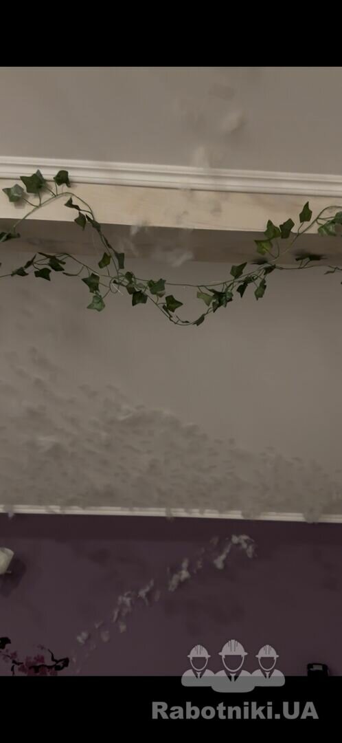 На стелі на стіні лишився двосторонній скотч(силіконовий) потрібно прибрати його на пофарбувати стіни та стелю.
