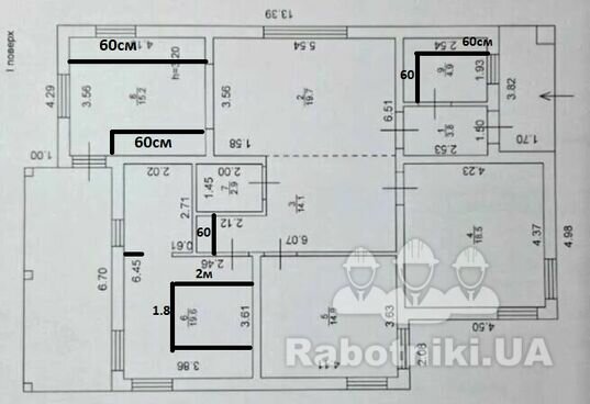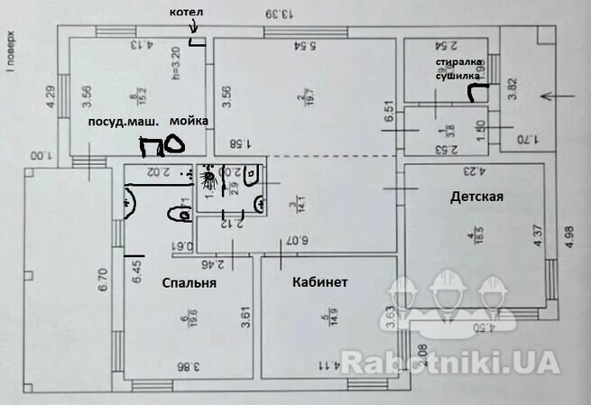 частный дом 115 кв.м., 1 этаж, необходимо сделать разводку воды, 2 санузла, кухня, сделать водотвод в септик, монтаж и обвязка газового котла , а также укладка трубы теплого пола по всей площади.