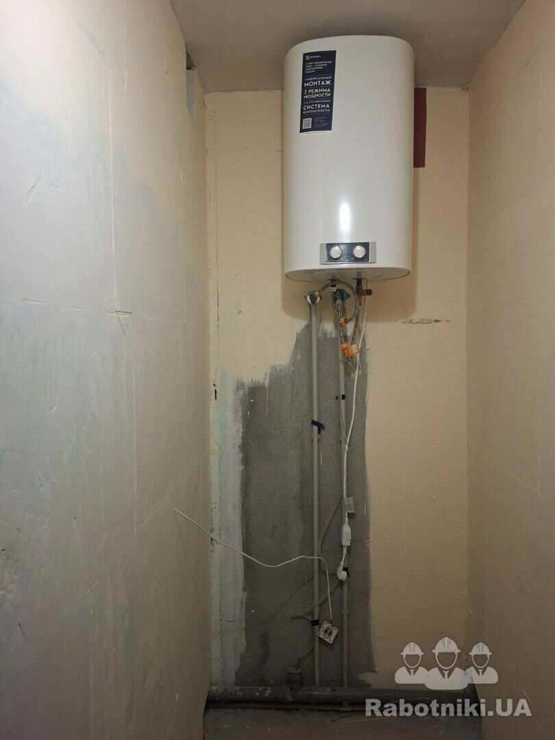 Потрібно зняти плитку,покласти нову,зробити витяжку, поставити бойлер в ванній демонтаж/монтаж, провести труби, зробити розетку під бойлер, зробити стелю з гіпсокартону, пофарбувати, зробити душ прихованого монтажу